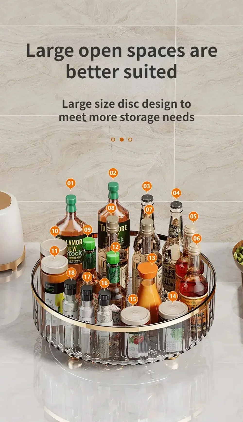 Efficient organization: Keep your spices in order with this rotating spice spinner that can hold up to 20 spice bottles at once.