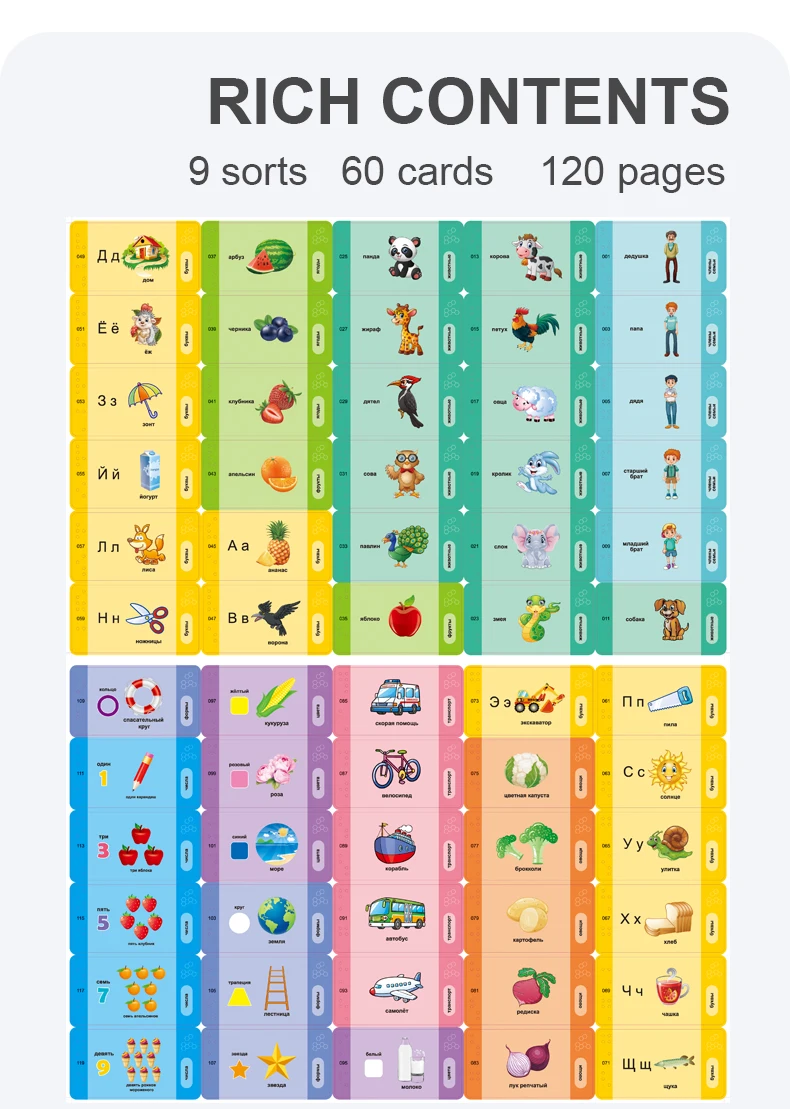 Russian Cards Readers Flashcards Early Educational Russia Baby Toys Learning Language Child Alphabet Cards Reading Books Gift