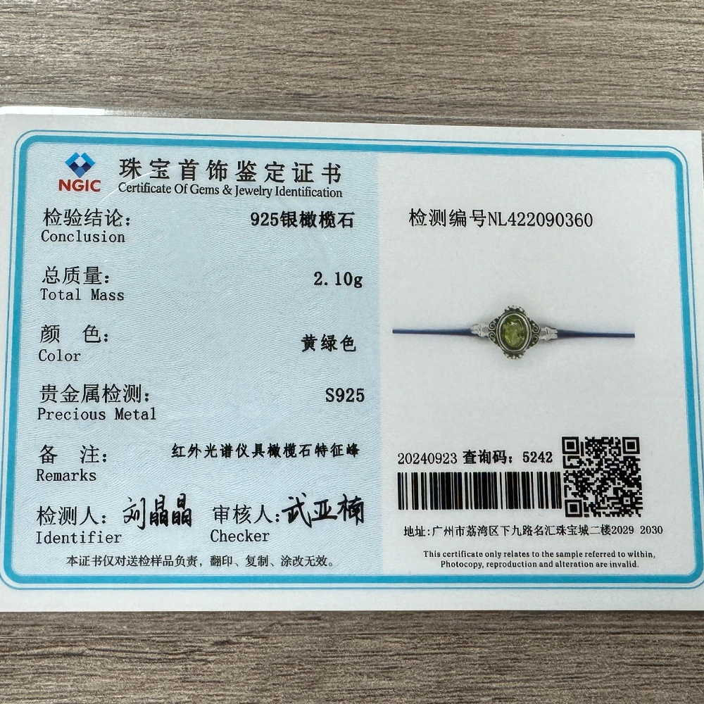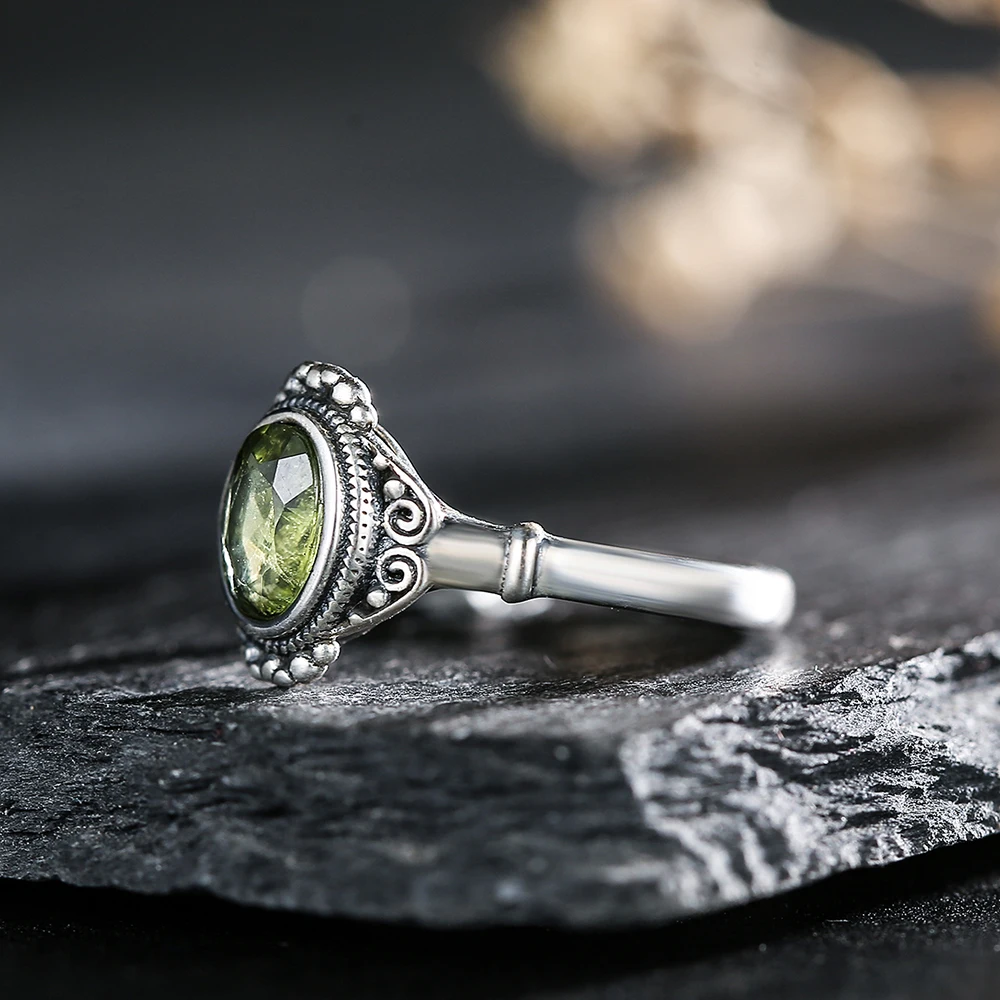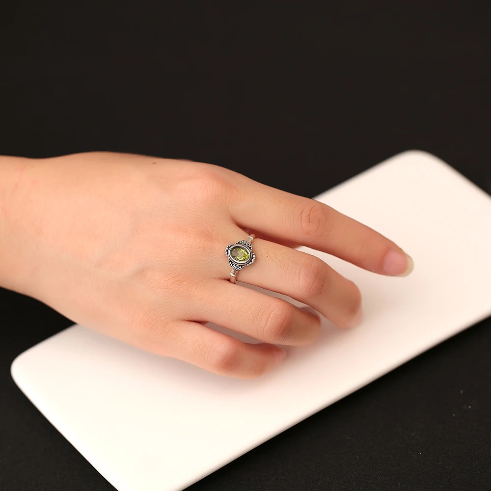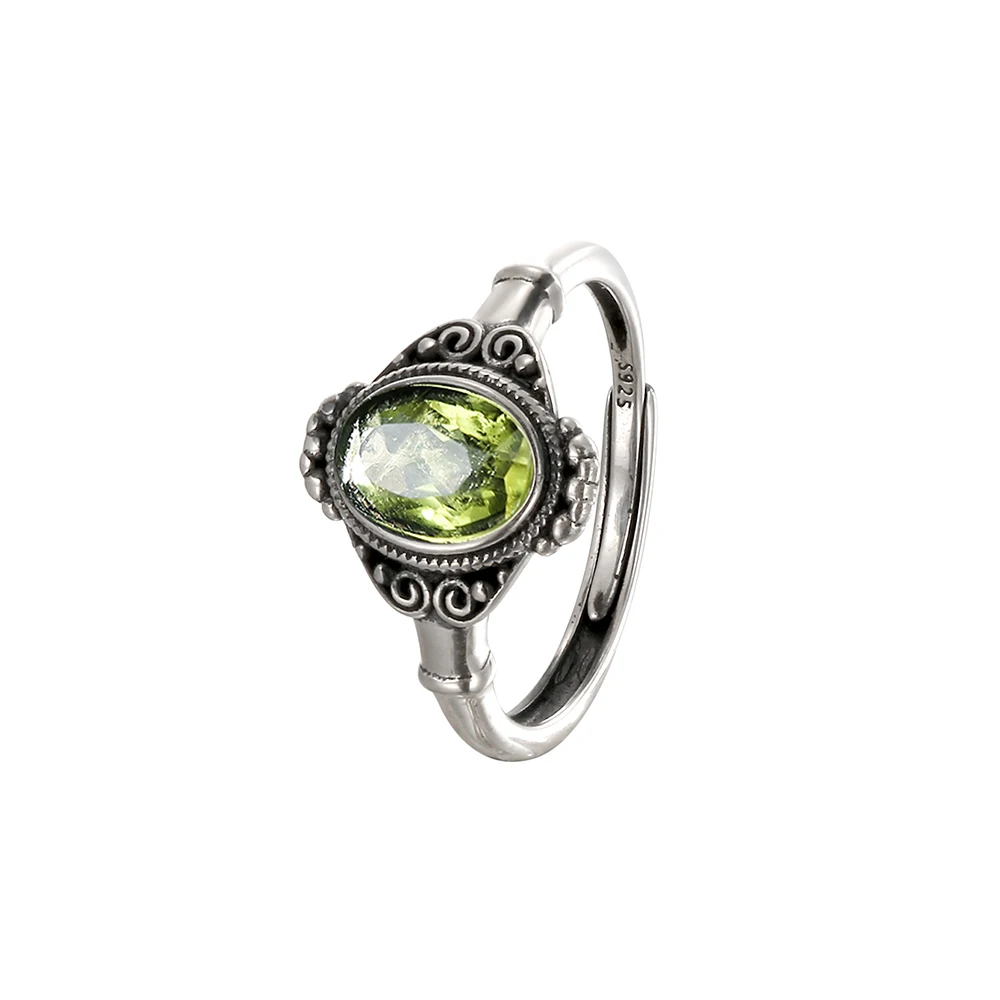 S925 sterling silver classic retro ring, set with natural gemstone green olivine women’s ring jewelry gift ring size adjustable