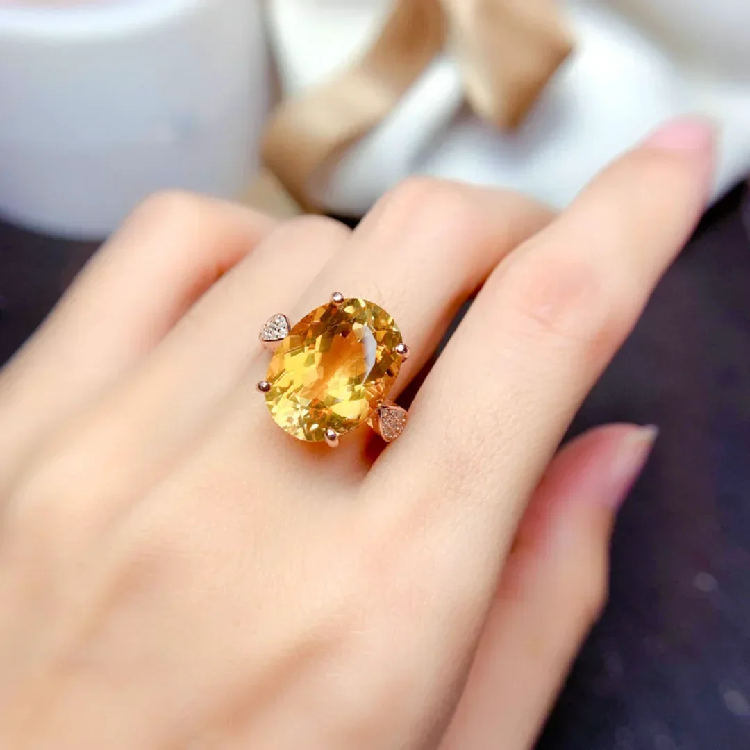 S925 Sterling Silver Natural Citrine Ring Ladies Premium Large Granule Citrine Ring Adjustable with Certificate