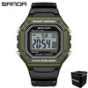 SANDA 2156 Men Watch New Model Electronic Digital Movement Rectangle Led Display Dial Outdoor Sports Watertight Male Wrist Watch