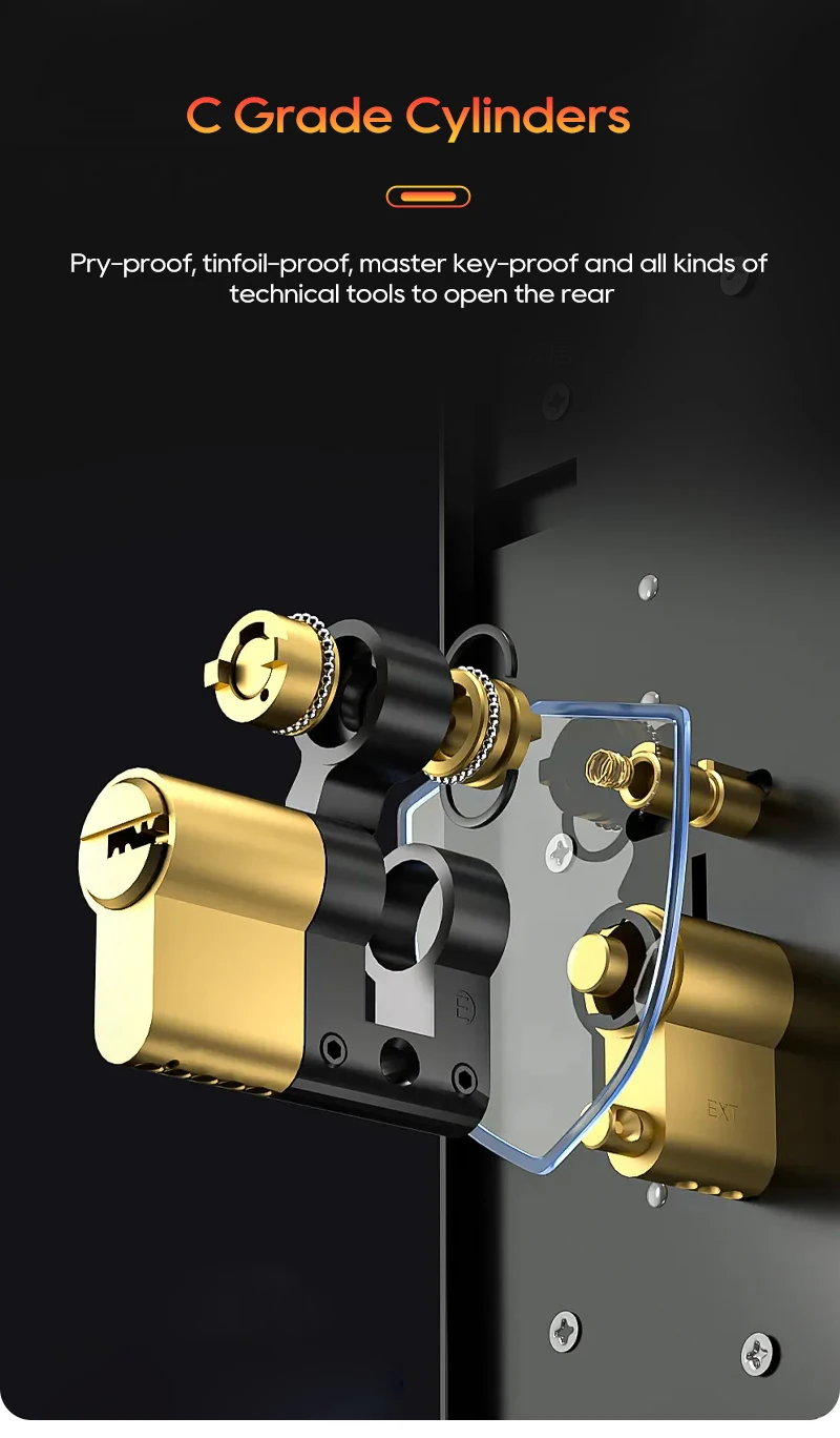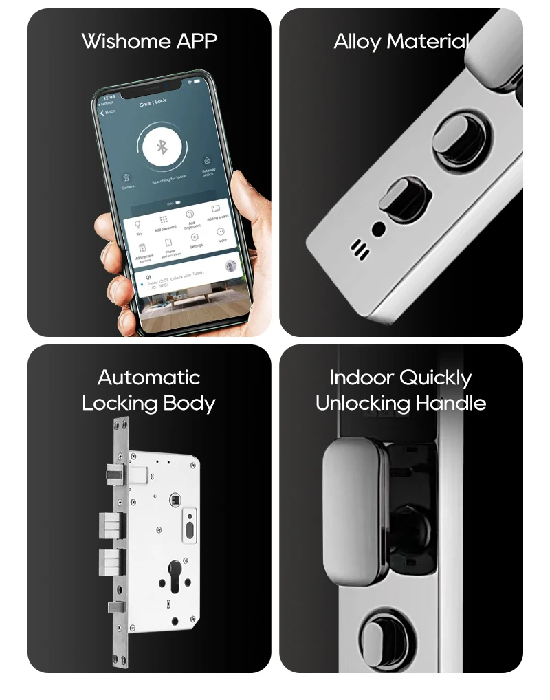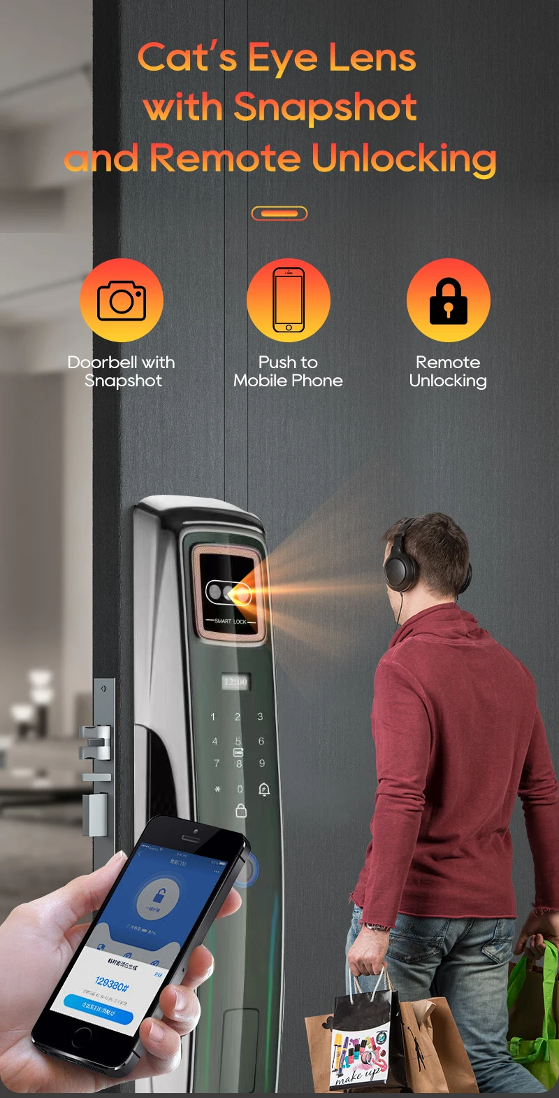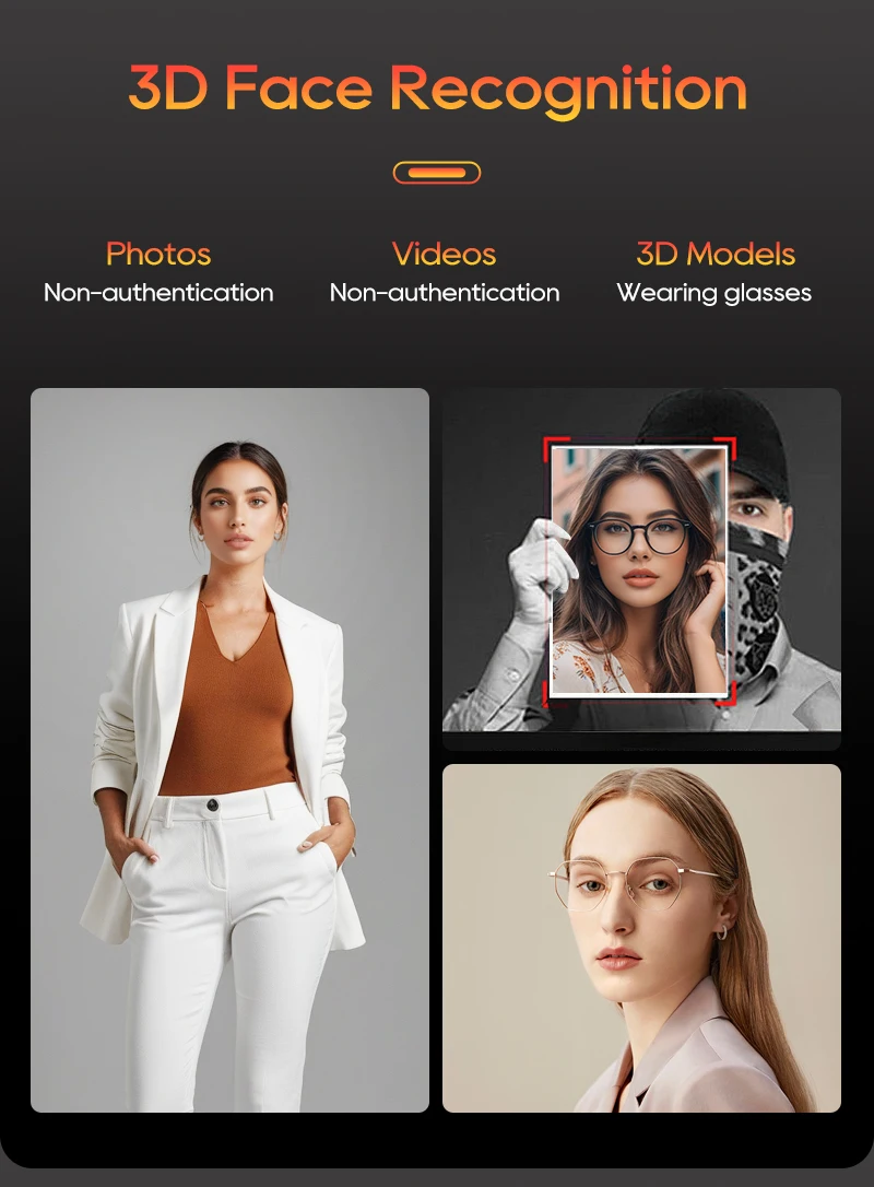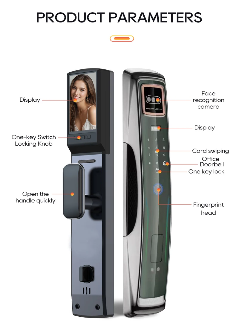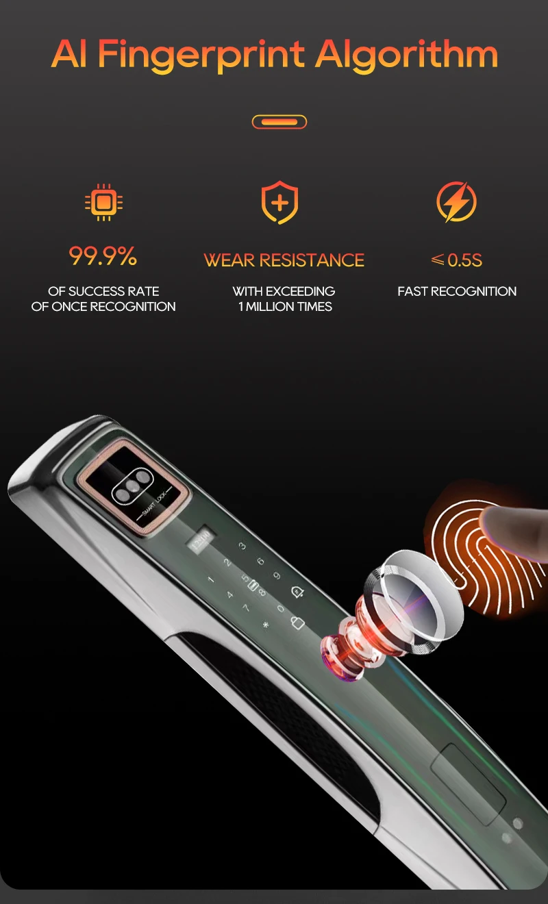 1. 6 unlock ways: 3D infraed Face,Fingerprint, Password, IC Card, Mechanical Key ,APP;