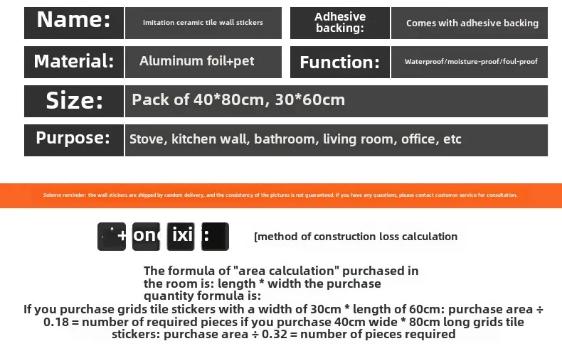 Self adhesive imitation ceramic tile imitation marble sanitary kitchen wall decoration waterproof and moisture-proof stickers