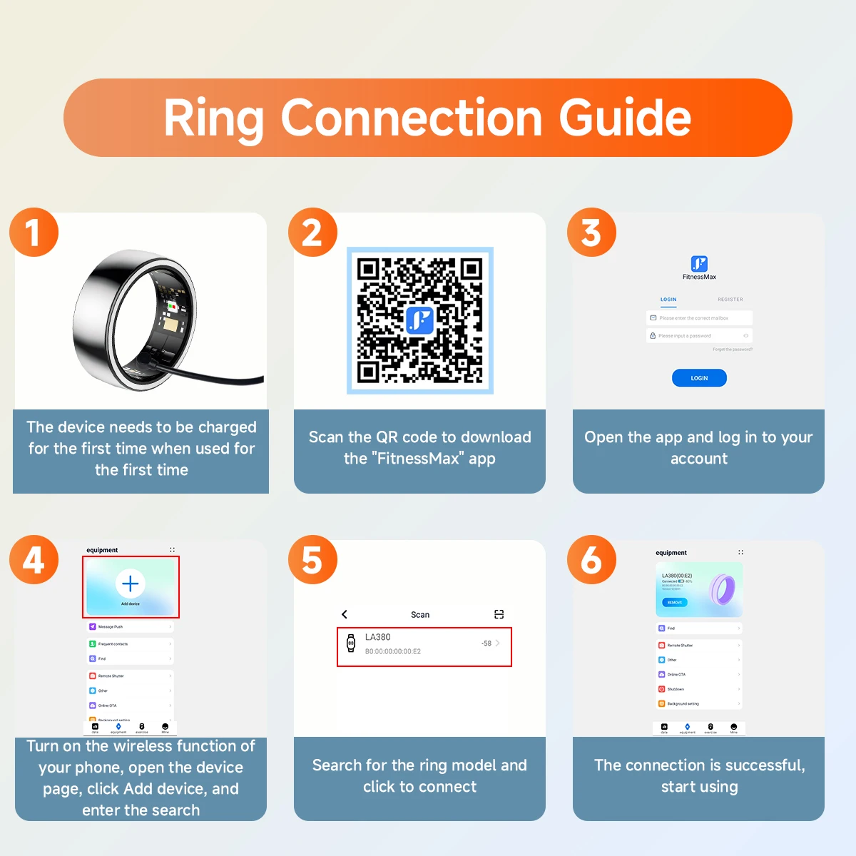 5. Packing list: Ring, Magnetic Charging Line, Instruction Manual, QC label, Packing Box