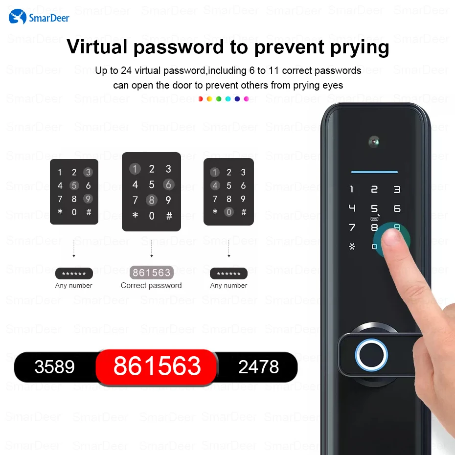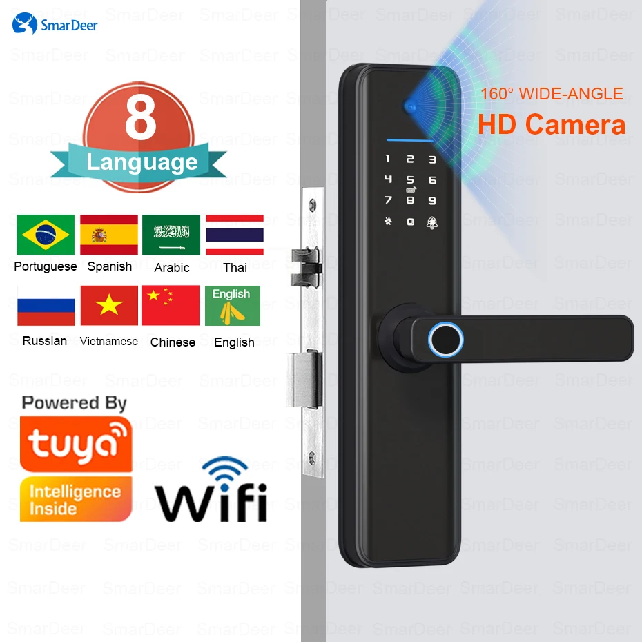 SmarDeer Electronic door lock with Camera for Tuya Smart Lock WiFi Fingerprint lock with keyless entry Digital door lock