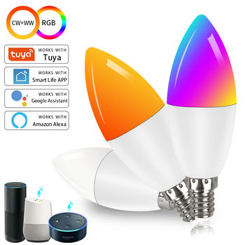 Tuya E14 WiFi Smart Light Bulb 220V 5/7/9W Brightness Adjustment APP Connection Alexa Google Voice Control RGB Light Bulb