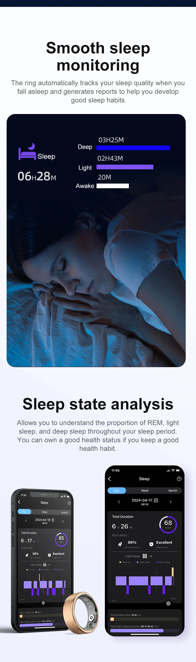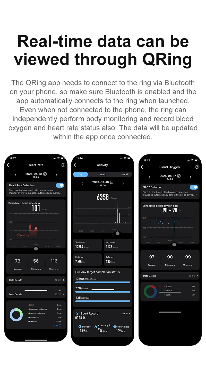 3. How to start: Charge the Ring with the included charging cable. The heart rate light will light up to indicate successful startup. Then you can use the APP to connect the Ring.