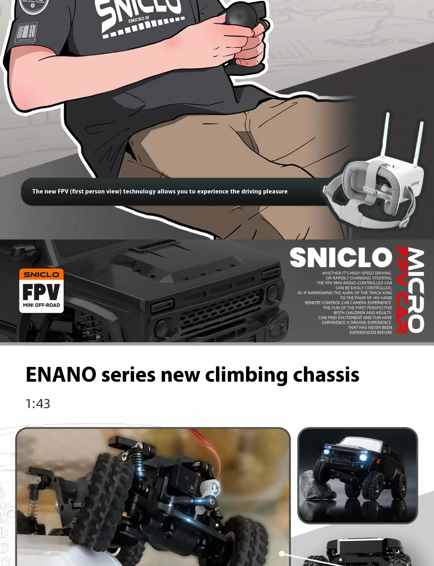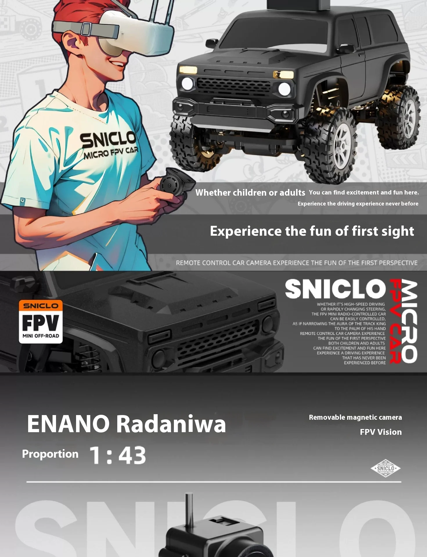 Sniclo Mini 1:43 Enano Off-Road 8031 FPV Car Remote Control Desktop Racing Car 4wd Off Road Vehicle with Goggle/Controller