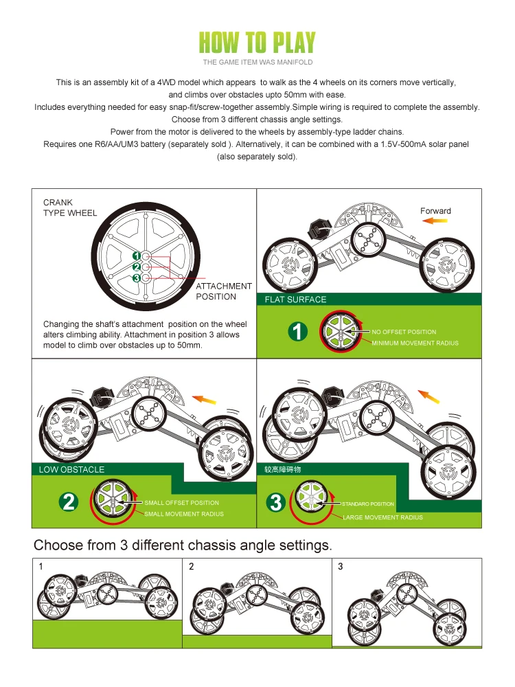 3. This is a four-wheel drive model device, which can use the vertically moving wheels on the four corners to move forward, and can easily climb over 50mm high obstacles.
