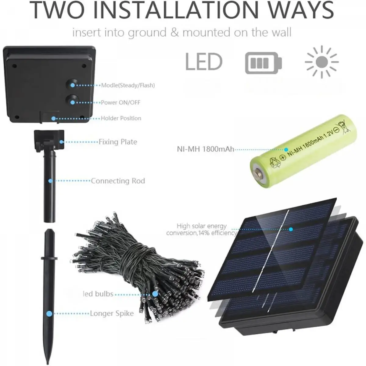 Solar Waterproof Fairy String 12 22 32M LED Lights Outdoor Festival Solar Lamp 8 Lighting Modes for Party Garden Home Decoration