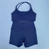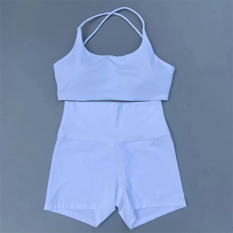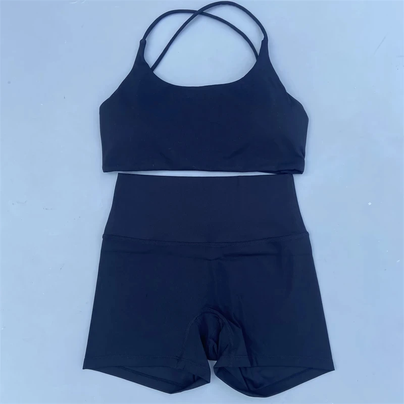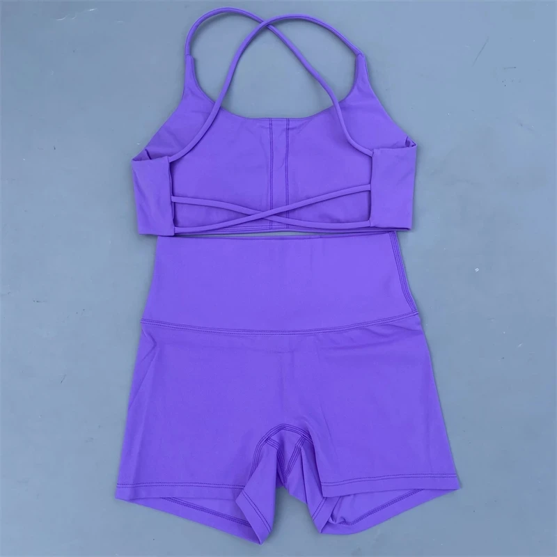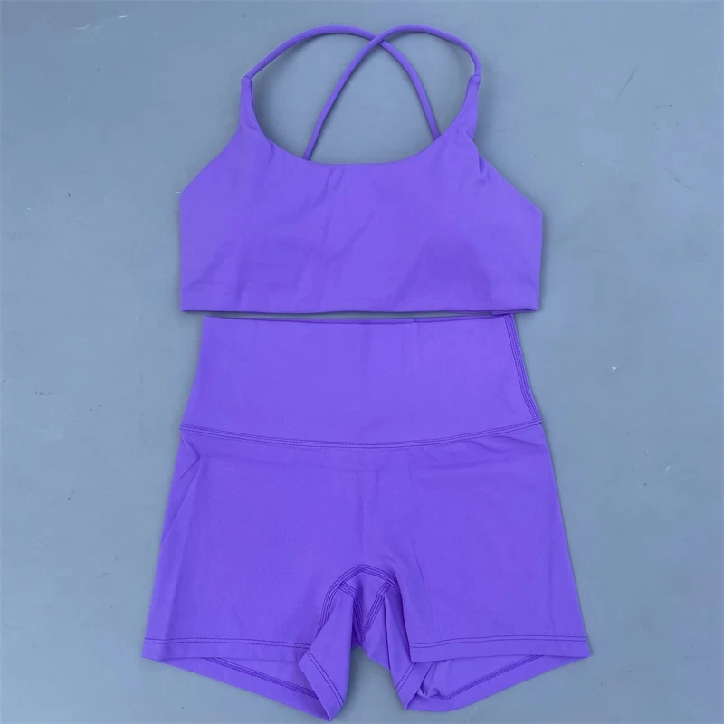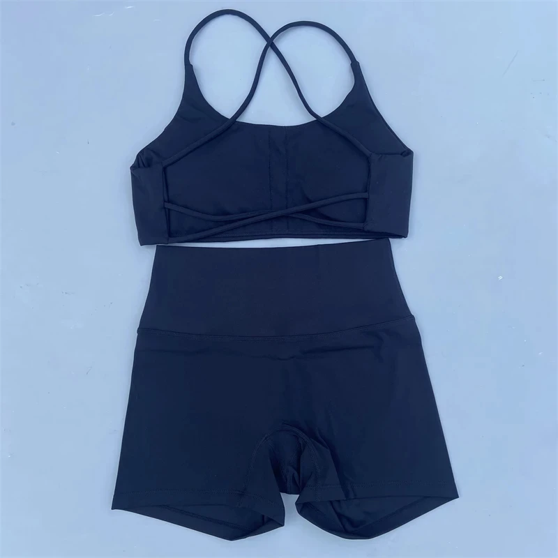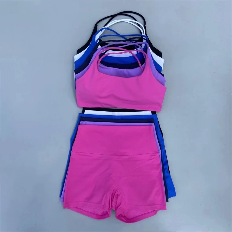 Solid Color Soft Gym Yoga Set Short Legging +Cross Sport Bra Tracksuit Women Gym Suit Comprehensive Training Jogging Athletic