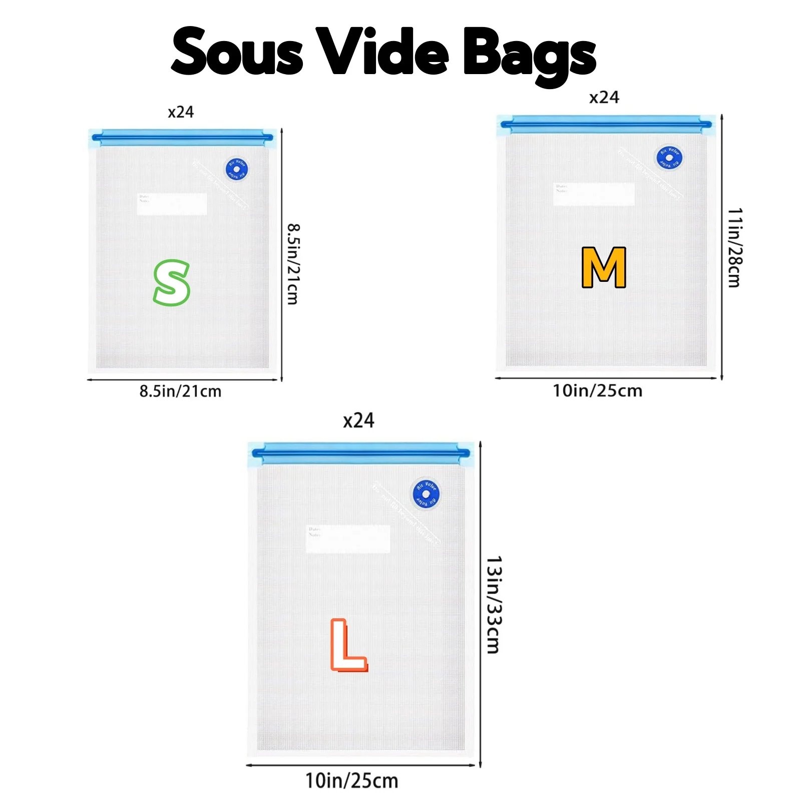 Sous Vide Bags, Reusable BPA Free Vacuum Sealer Bags Vacuum Food Storage Bags for Cooking/Food Storage/Microwave Heating