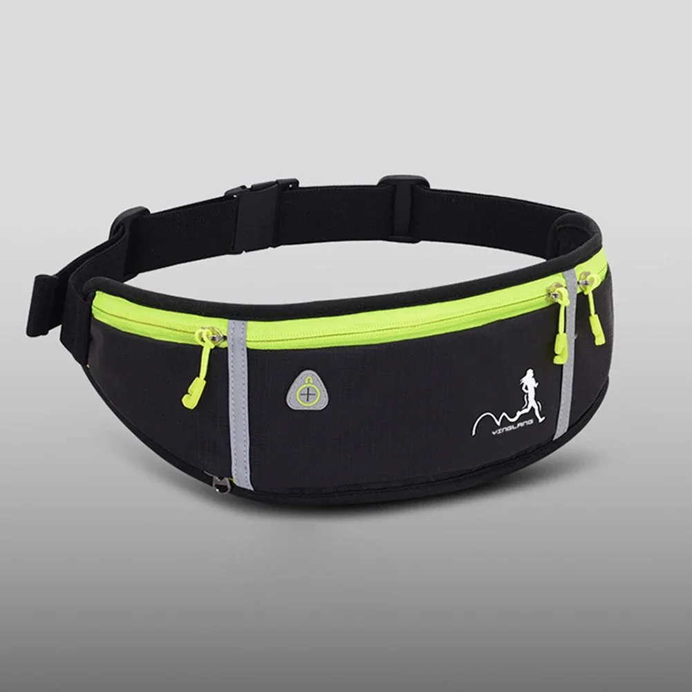 4.Reflective Safety Feature: Run confidently at night with the fitness fanny pack’s reflective strip design, enhancing visibility and safety during your nocturnal adventures. This vital feature provides peace of mind by making you more noticeable to others when it’s dark out.
