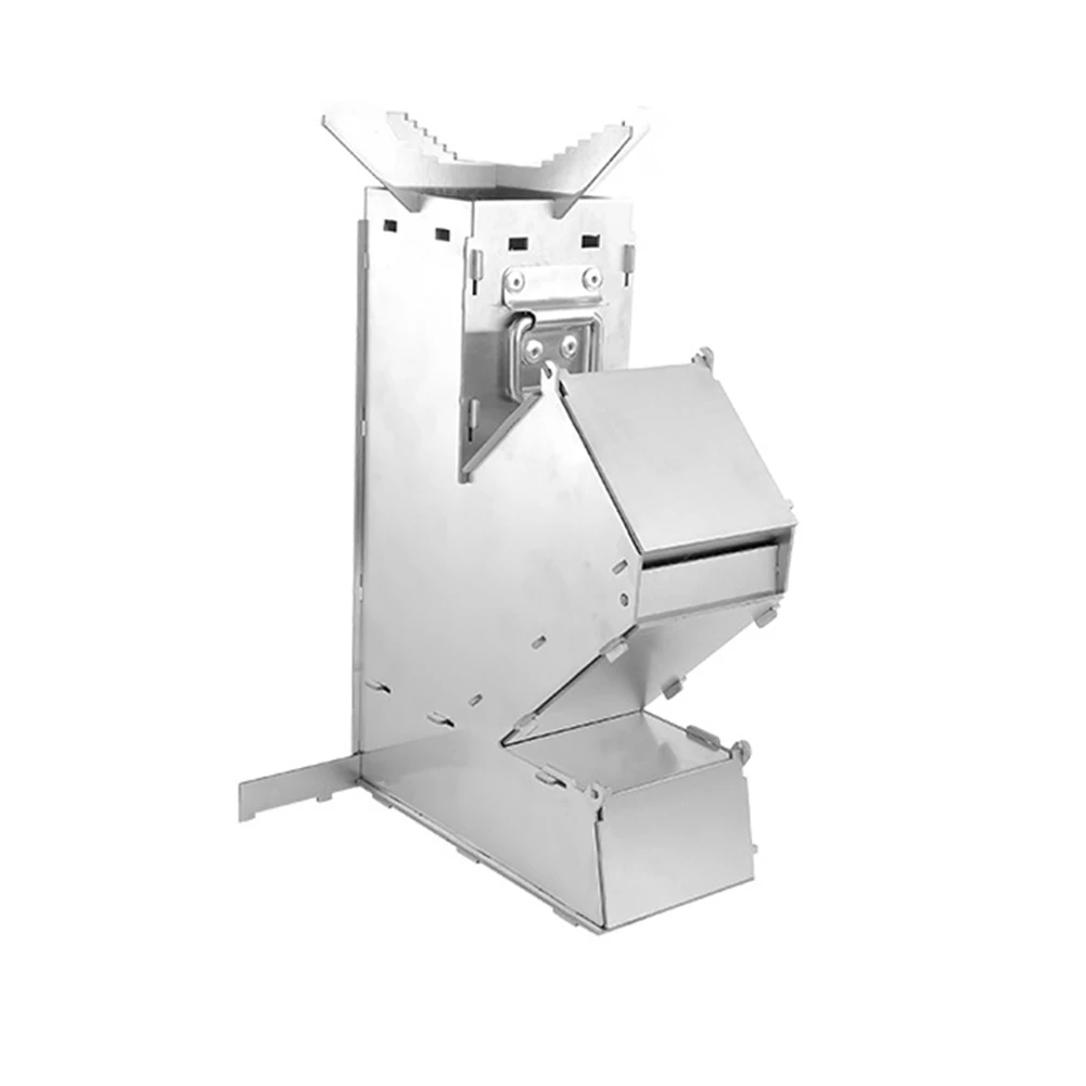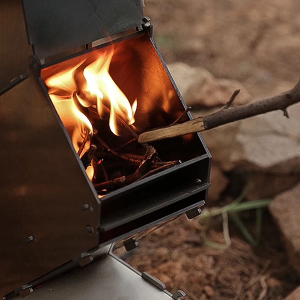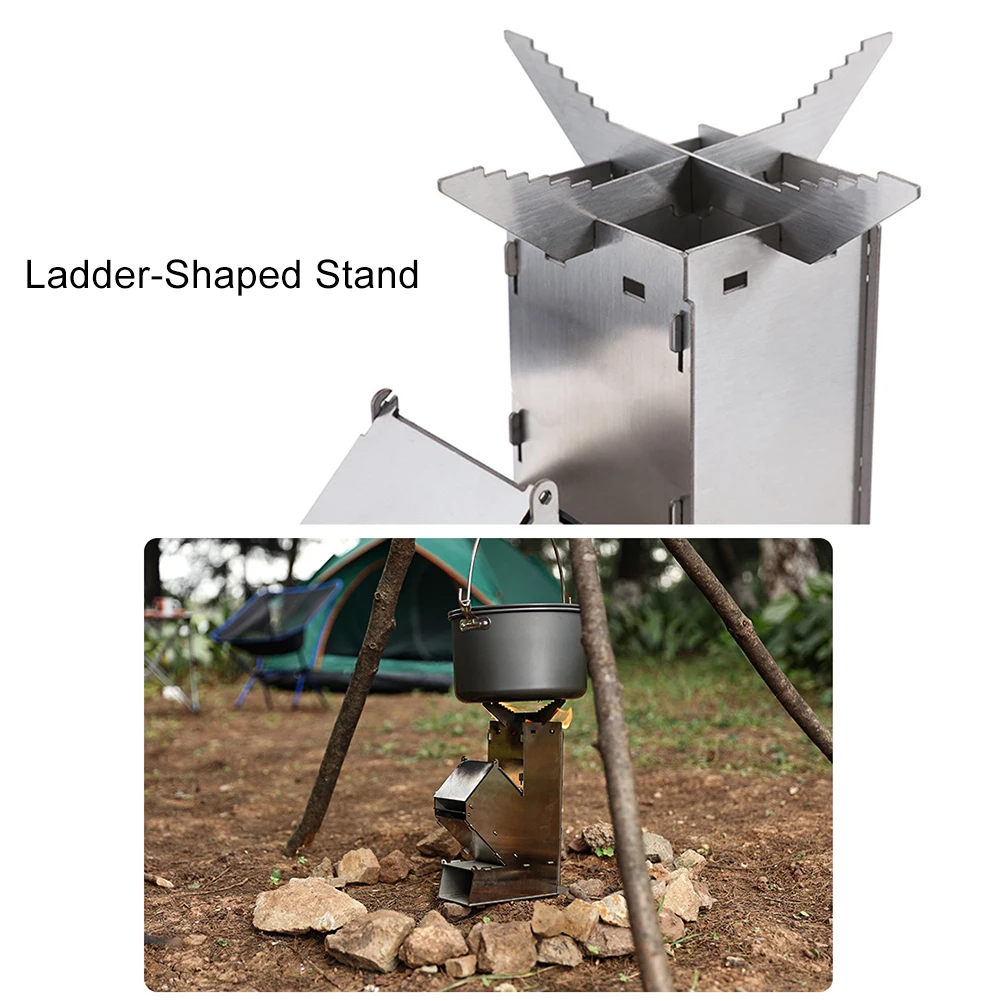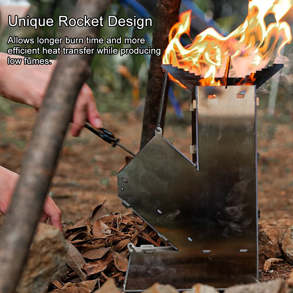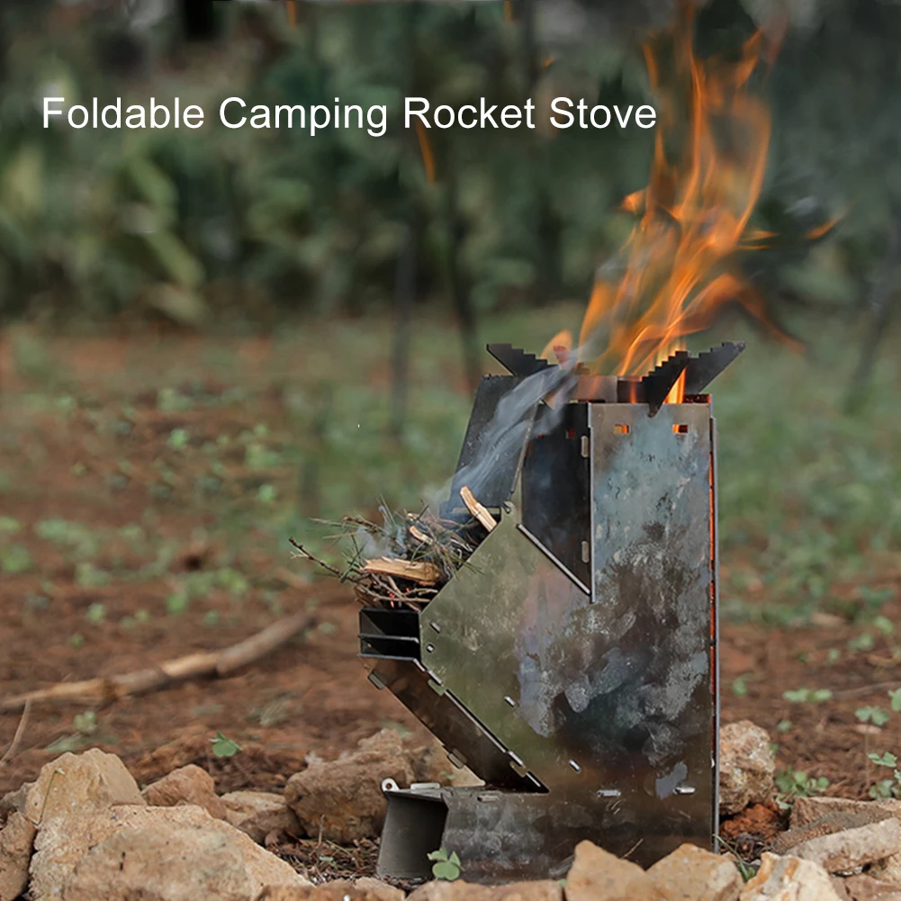 Stainless Steel Foldable Camping Wood Stove Collapsible Rocket Firewood Stove Burning Outdoor Camping Hiking Bushcraft
