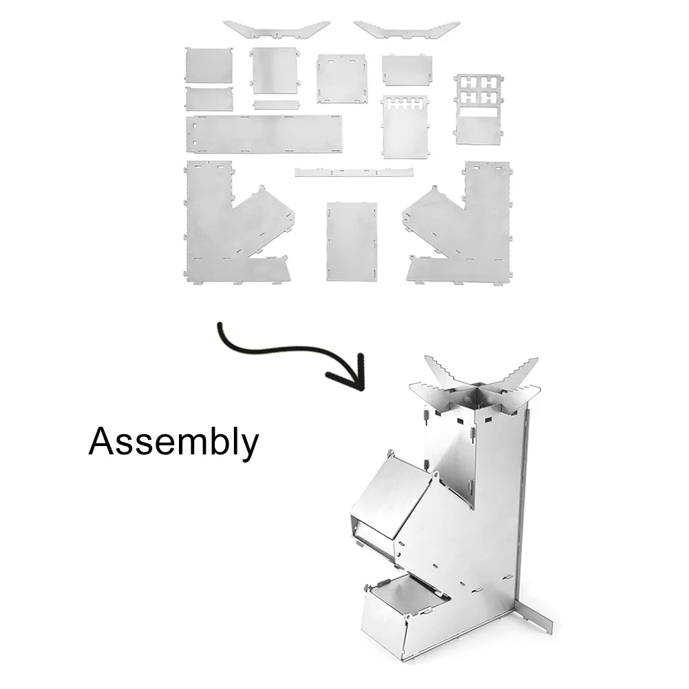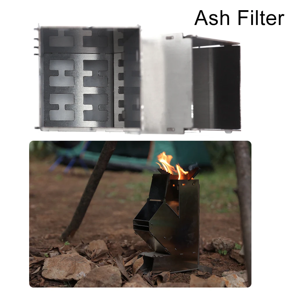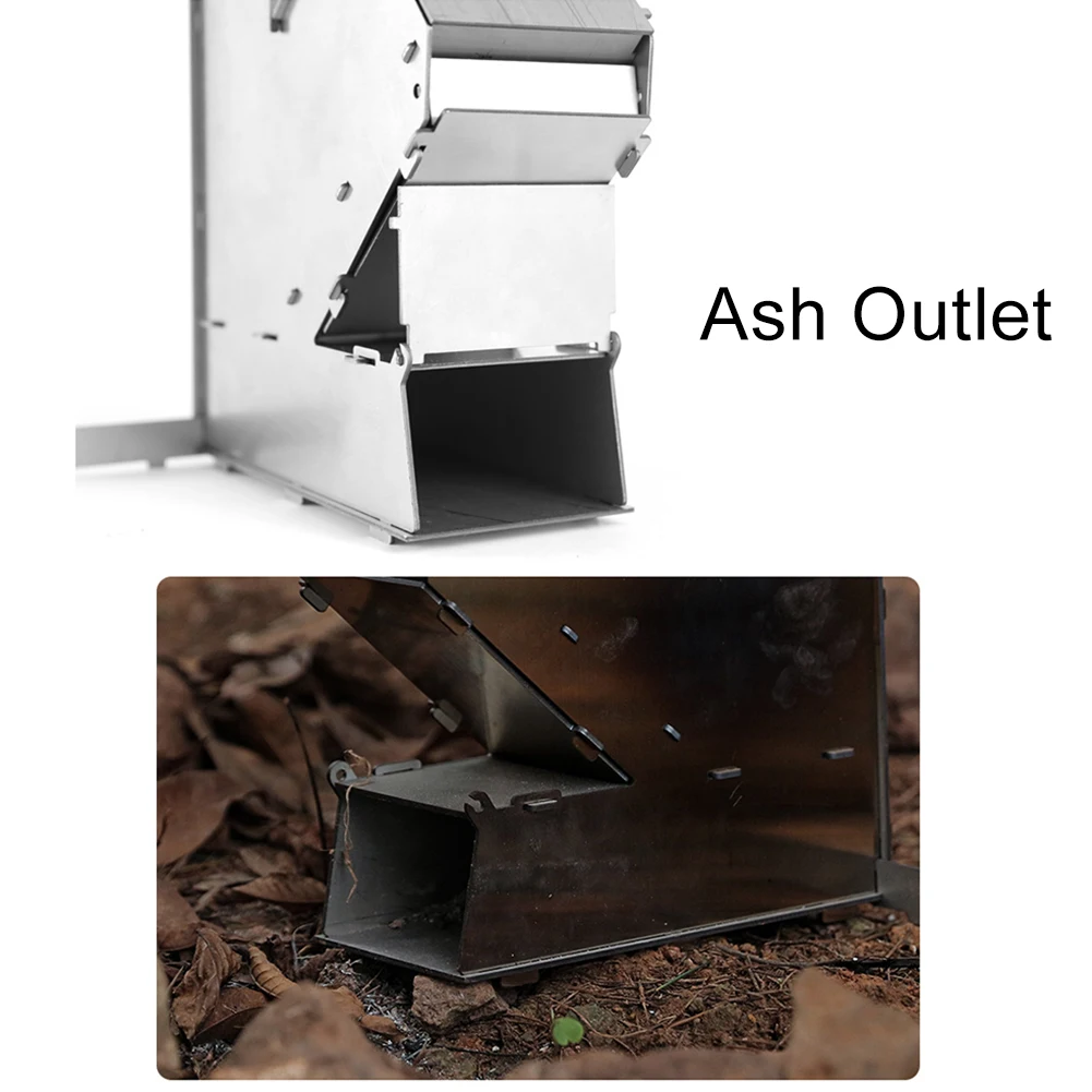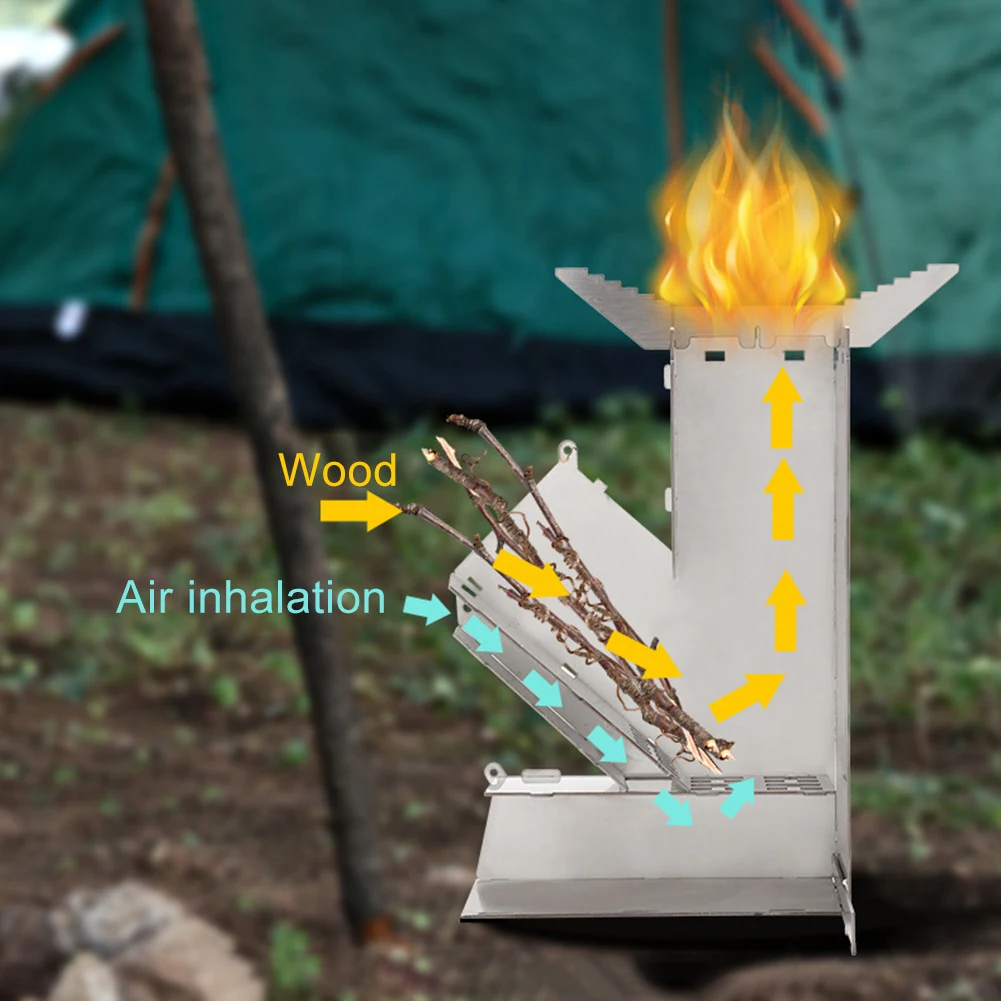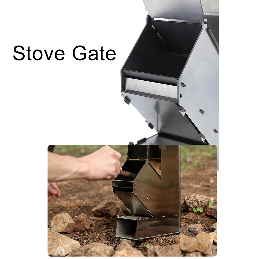 Stainless Steel Foldable Camping Wood Stove Collapsible Rocket Firewood Stove Burning Outdoor Camping Hiking Bushcraft