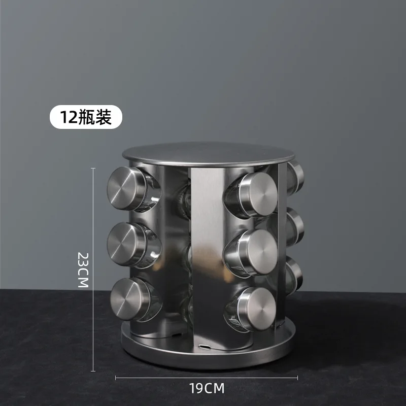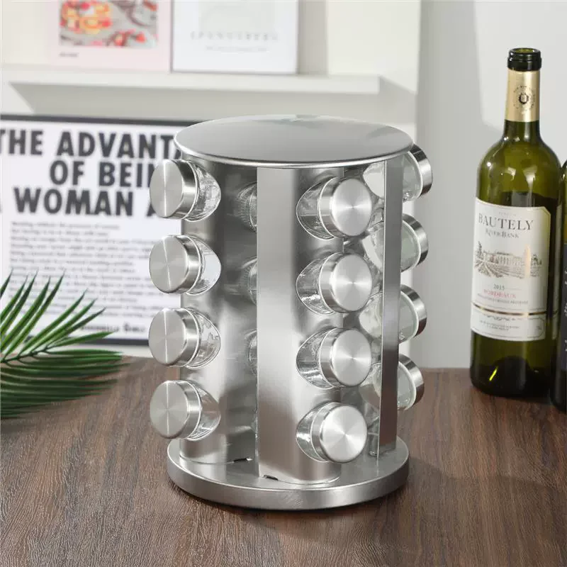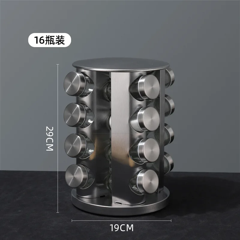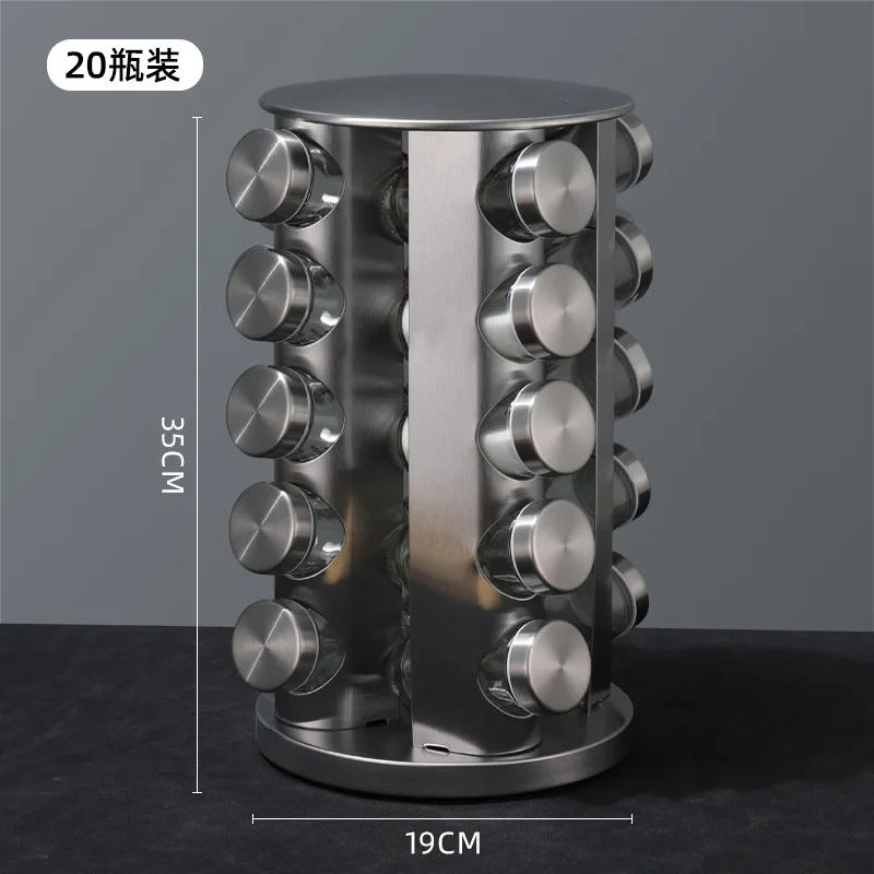 Stainless Steel Rotating Seasoning Rack Kitchen Supplie Seasoning Jar Set Herb And Spice Tools Glass Spice Jar Condiments Shelf