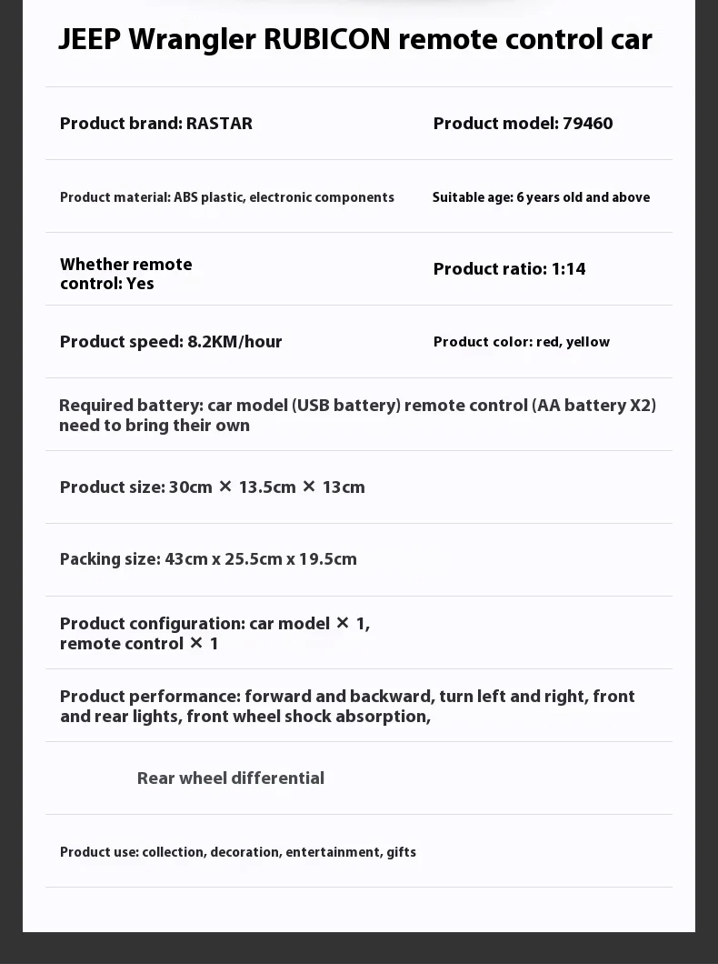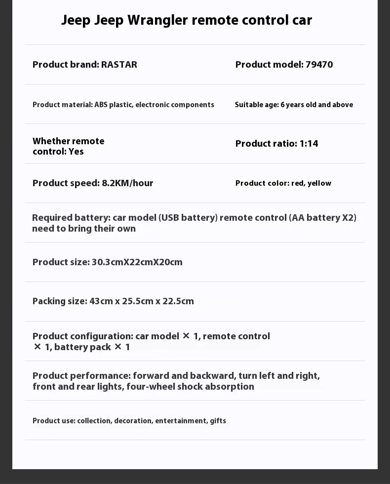 Starlight Jeep Off road Remote Control Car Large Charging Racing Car Model Boy Birthday Gift Toy Car