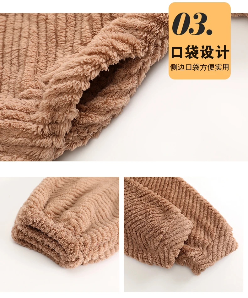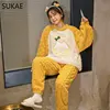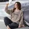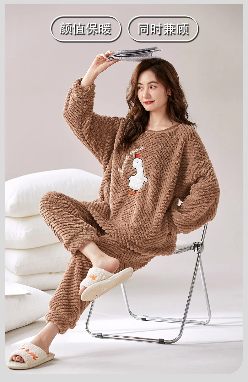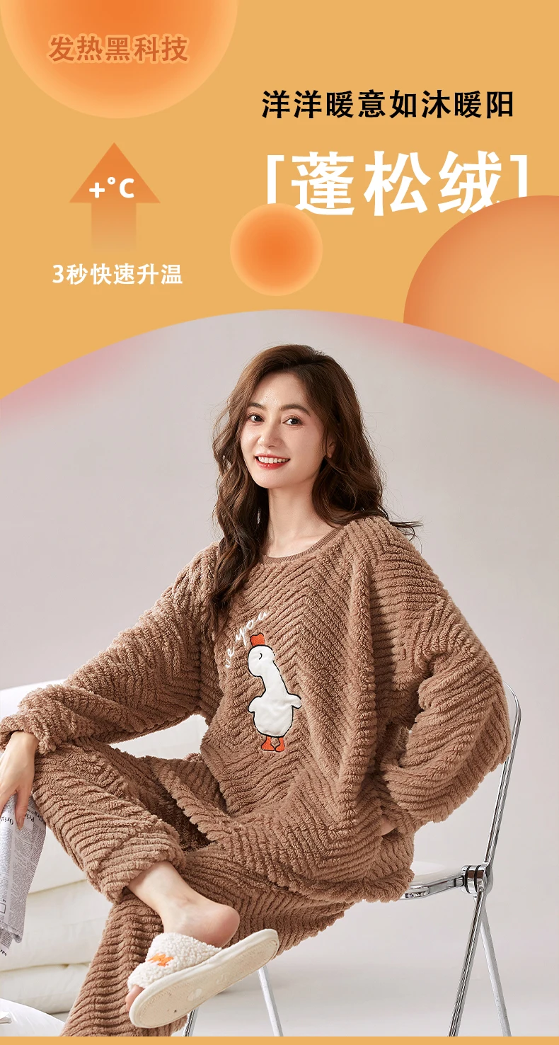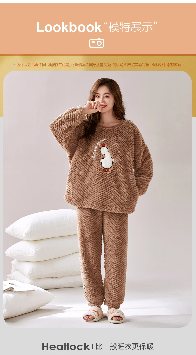 SUKAE Winter Woman Pajamas Set Long Sleeves Fluffy Herringbone Thick Coral Fleece Sleepwear Teddy Homewear Girl Velvet Pijamas