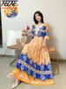 Summer Indian Dress Women Clothes Ropa De Muje Boho Long Vintage Korean Fashion Beach Style Casual Bohemian Floral Robe Dresses