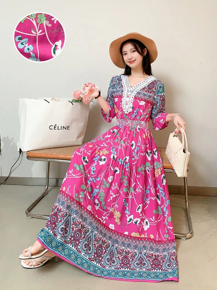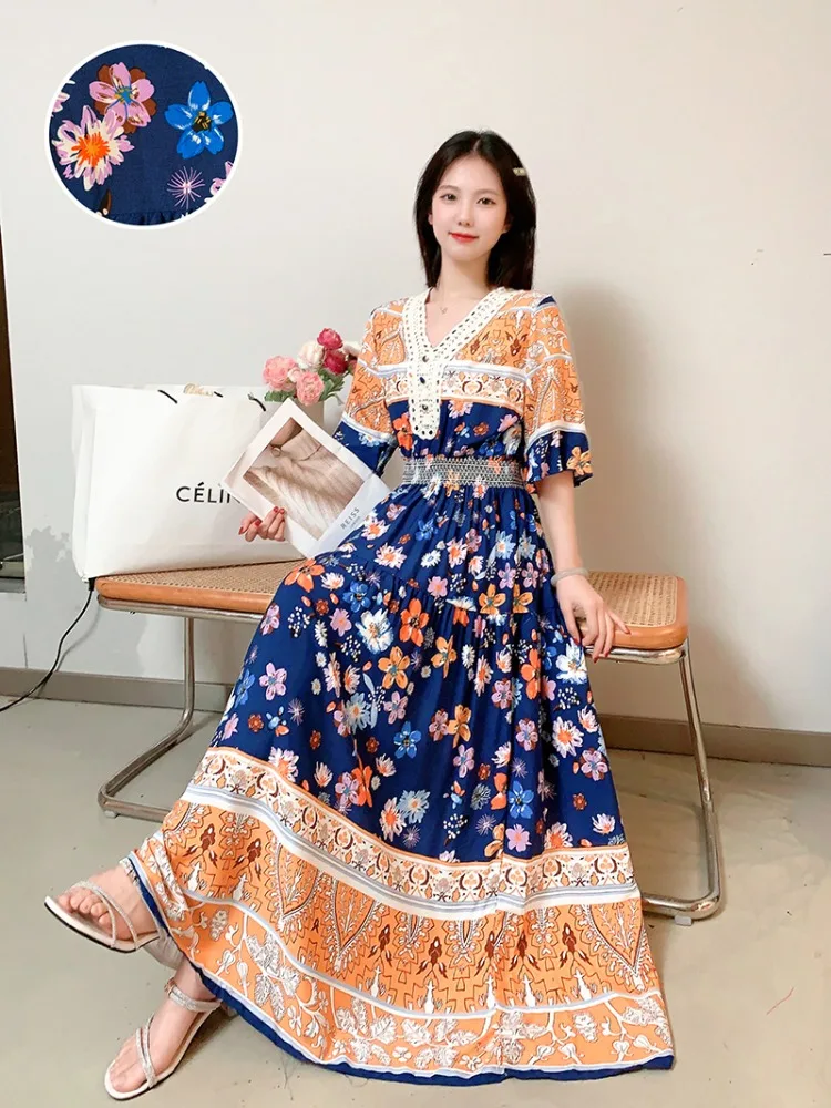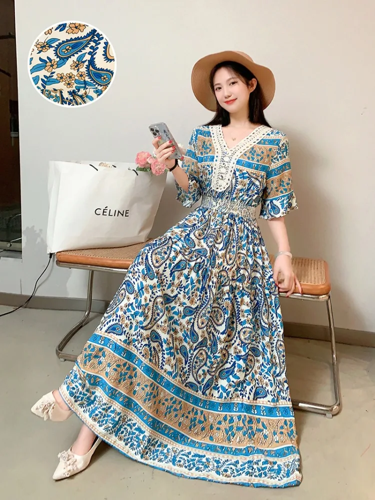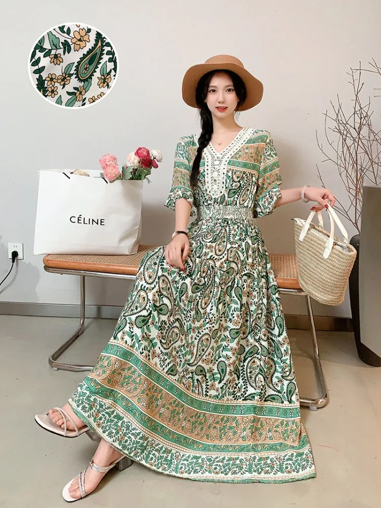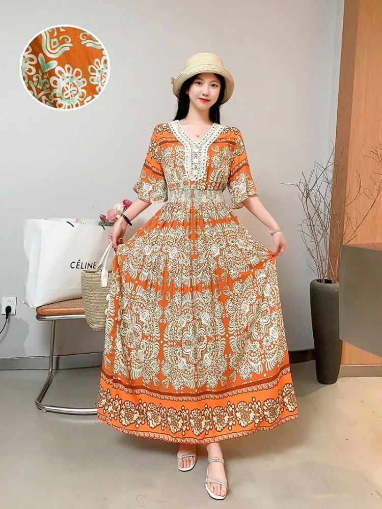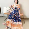 Summer Indian Dress Women Clothes Ropa De Muje Boho Long Vintage Korean Fashion Beach Style Casual Bohemian Floral Robe Dresses