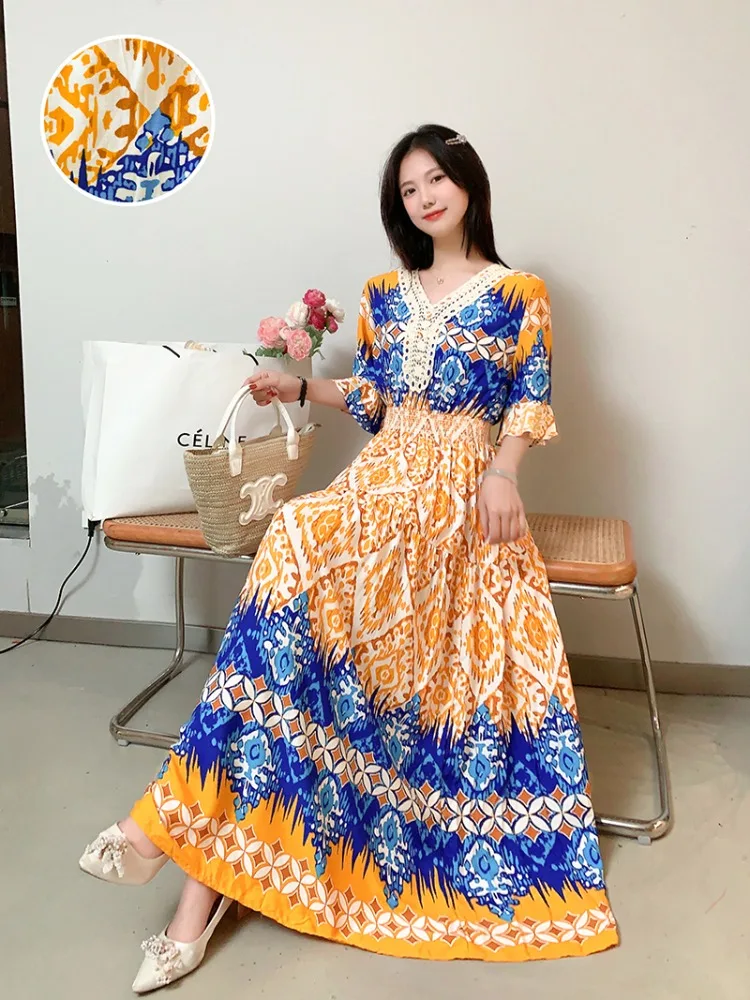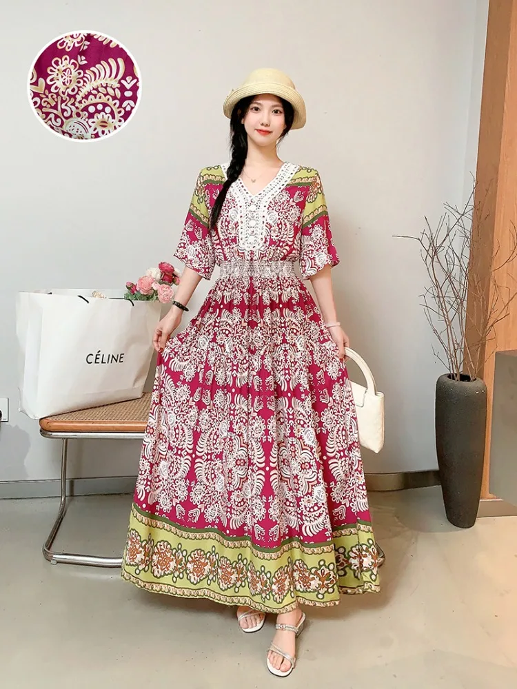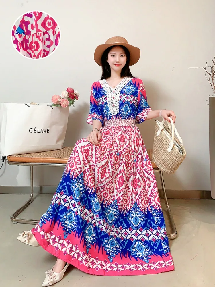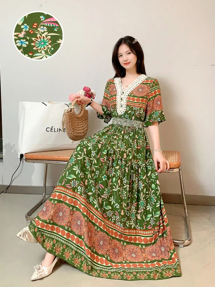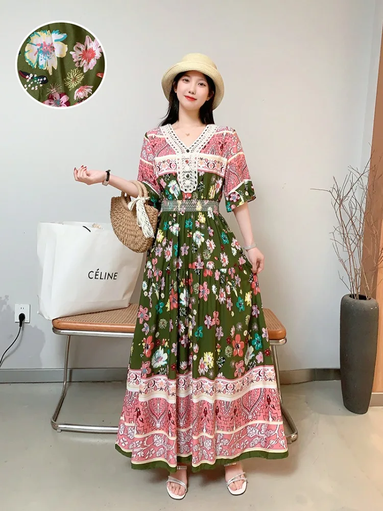 Summer Indian Dress Women Clothes Ropa De Muje Boho Long Vintage Korean Fashion Beach Style Casual Bohemian Floral Robe Dresses