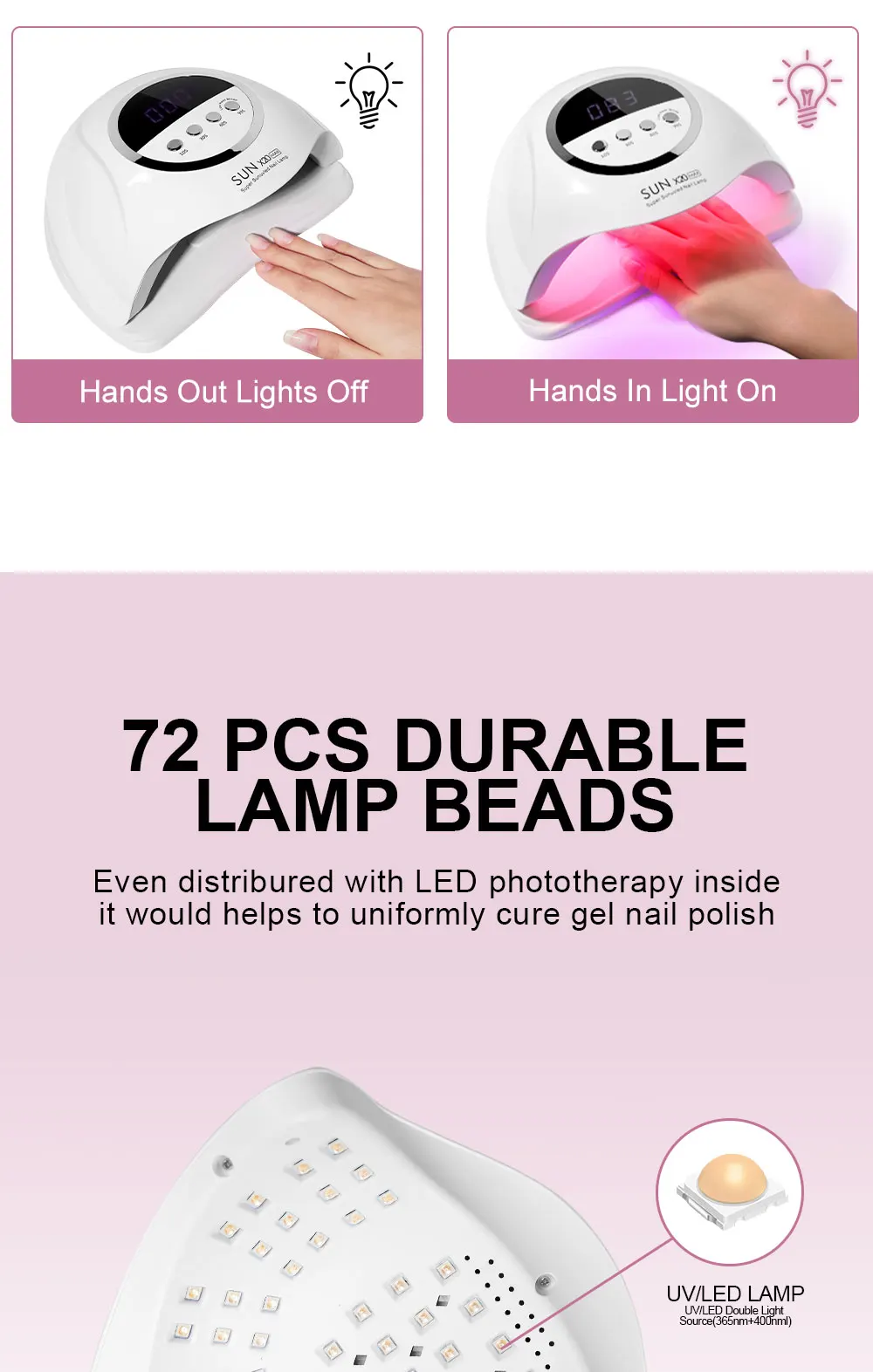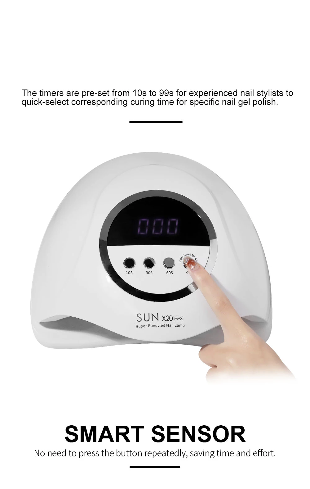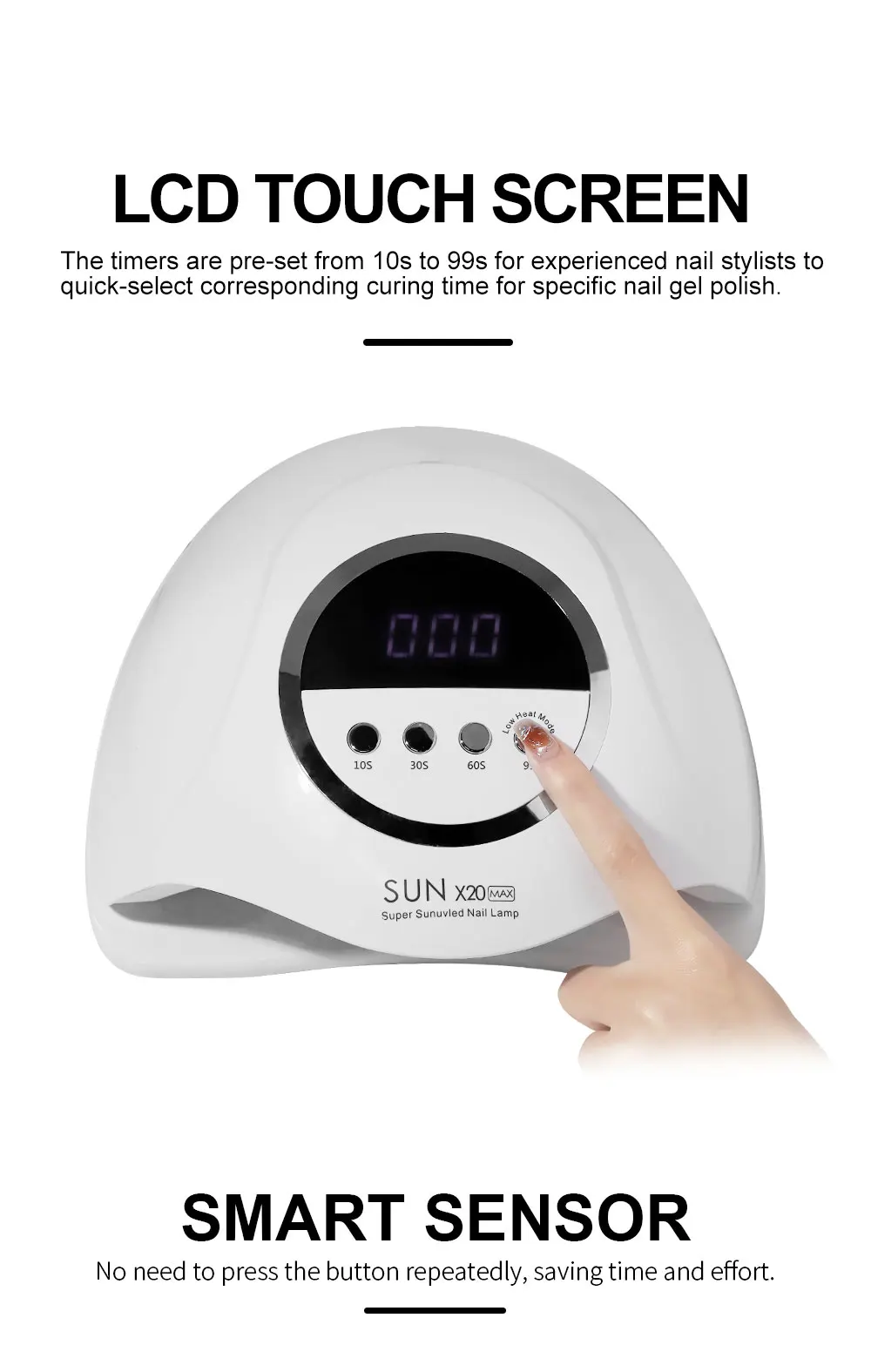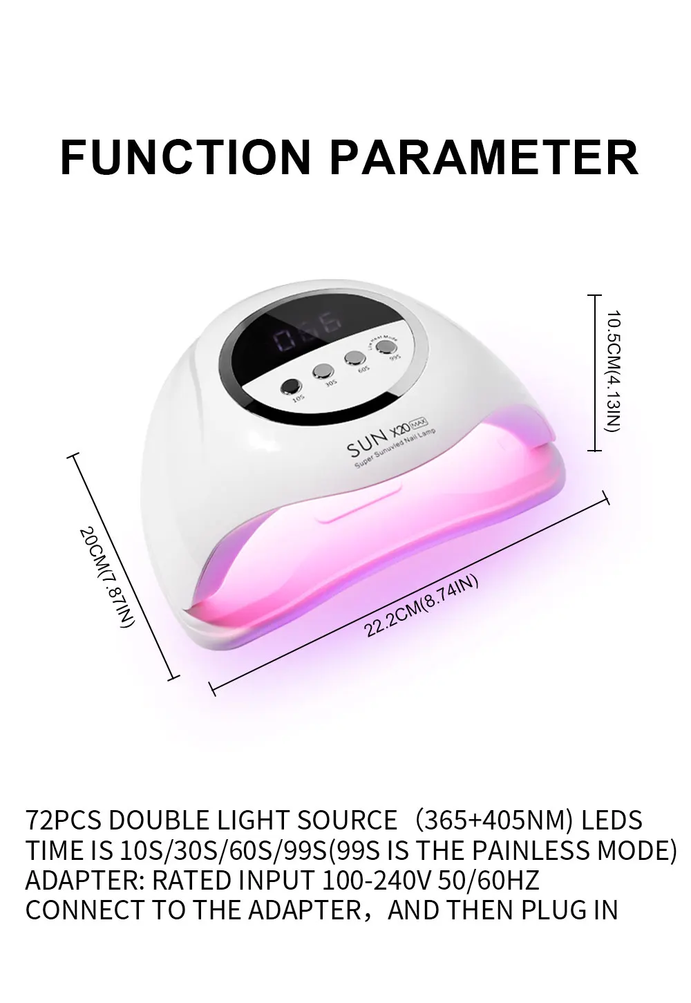 SUN X20 MAX Nail Dryer 72LED UV Nail Light with 4 Timers and Sensor Settings Nail Polish Curing Light for Nail Salon Tools