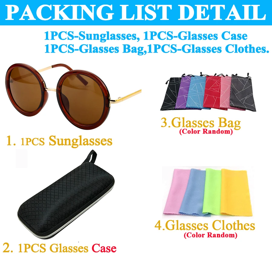 Product List(4PCS): Sunglasses, Glasses Case, Glasses Clothes, Glasses Bag.