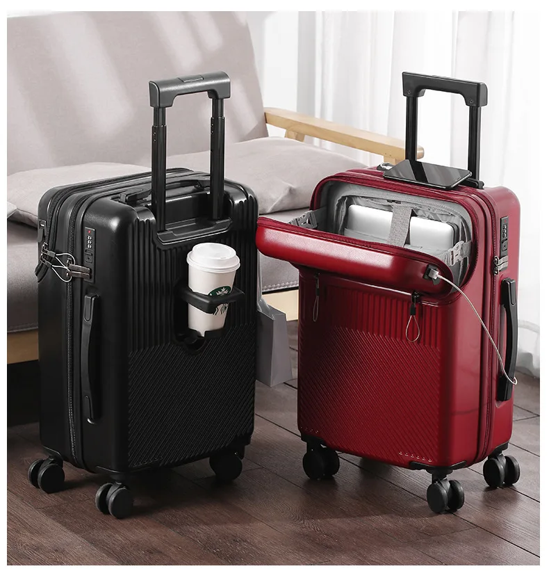 SUSHIMU2024 New Durable Large Capacity Luggage Sets Suitcase Front Open USB Charging Men Carry-On Travel 20/22/24/26