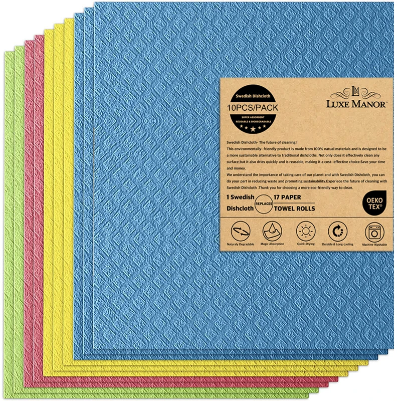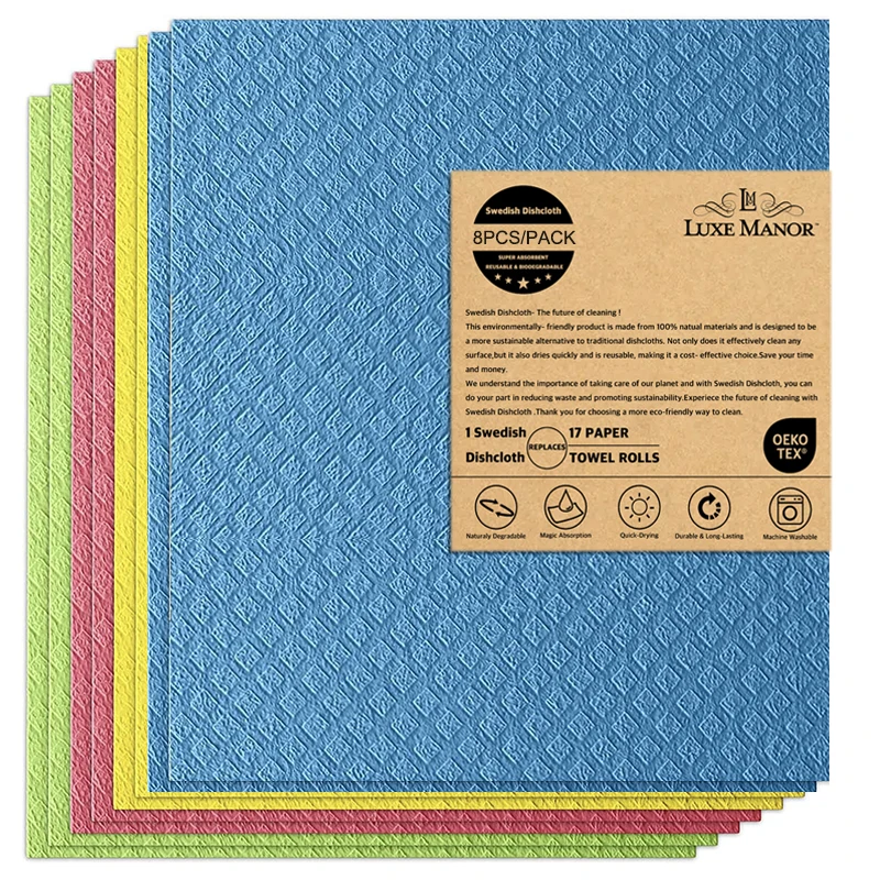 Swedish Dishcloths for Kitchen Solid Colour Series 4/8/12 pack Cloths Reusable Washable Wood Pulp Fiber Kitchen Cloths Replace P