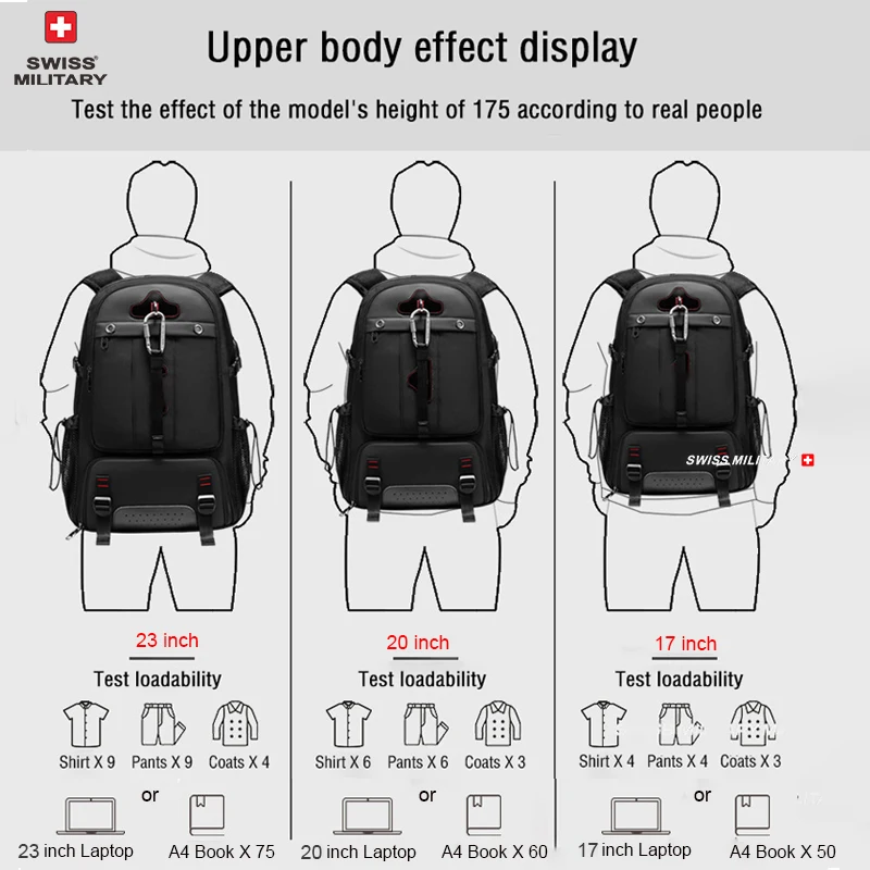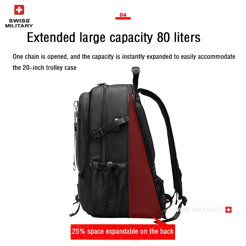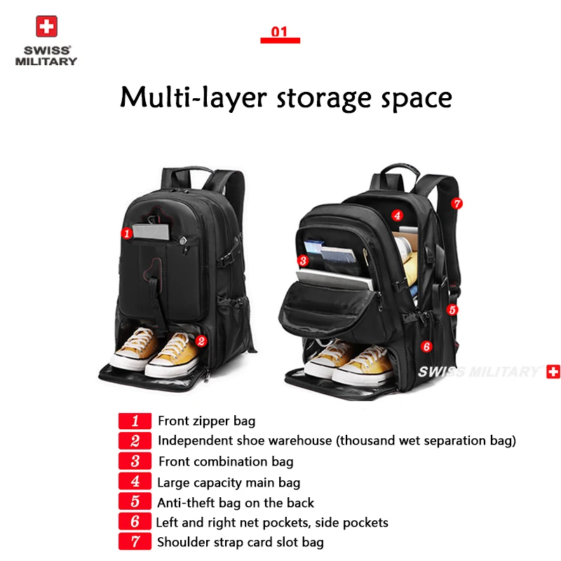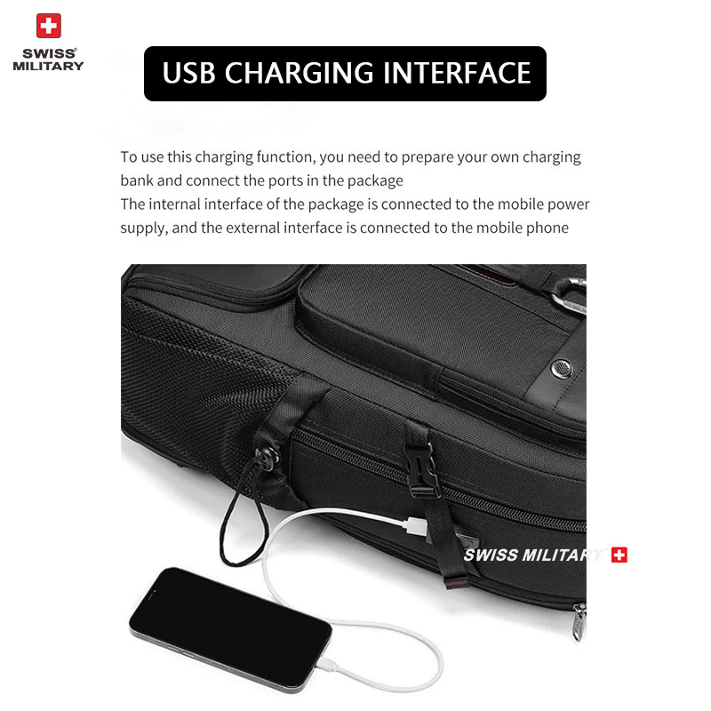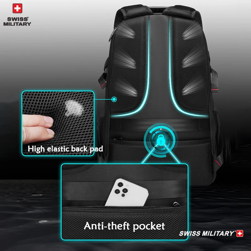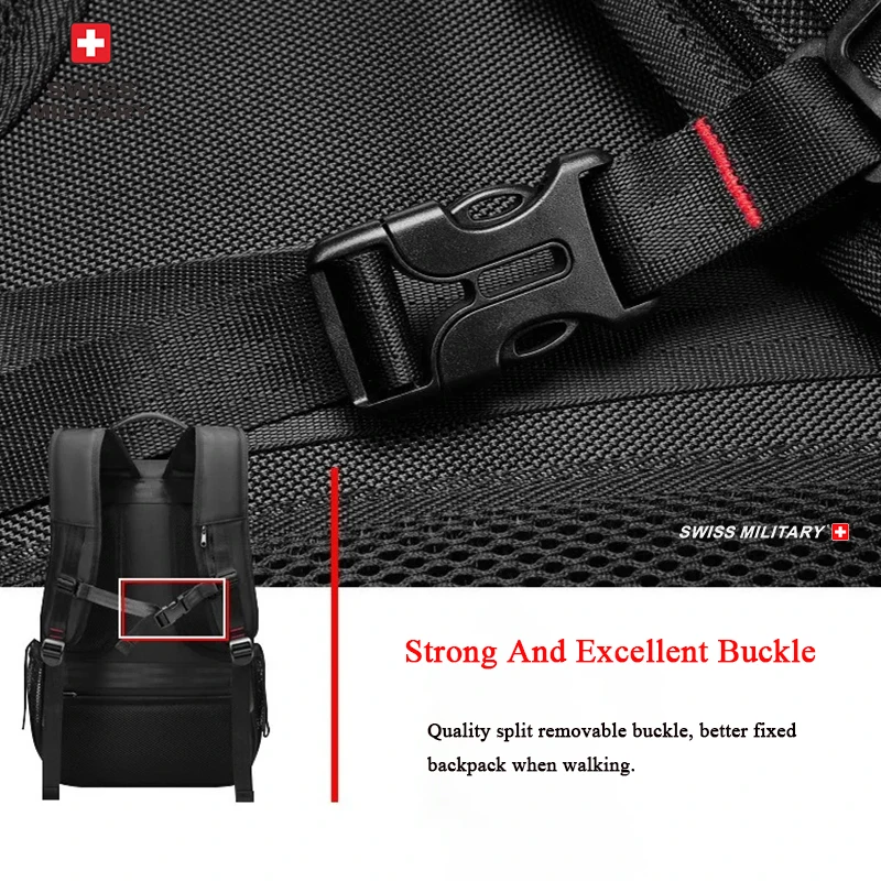 SWISS MILITARY Travel Backpack Men Hiking And Climbing Large-Capacity Backpack Fashion Expandable USB Bag Waterproof Backpack