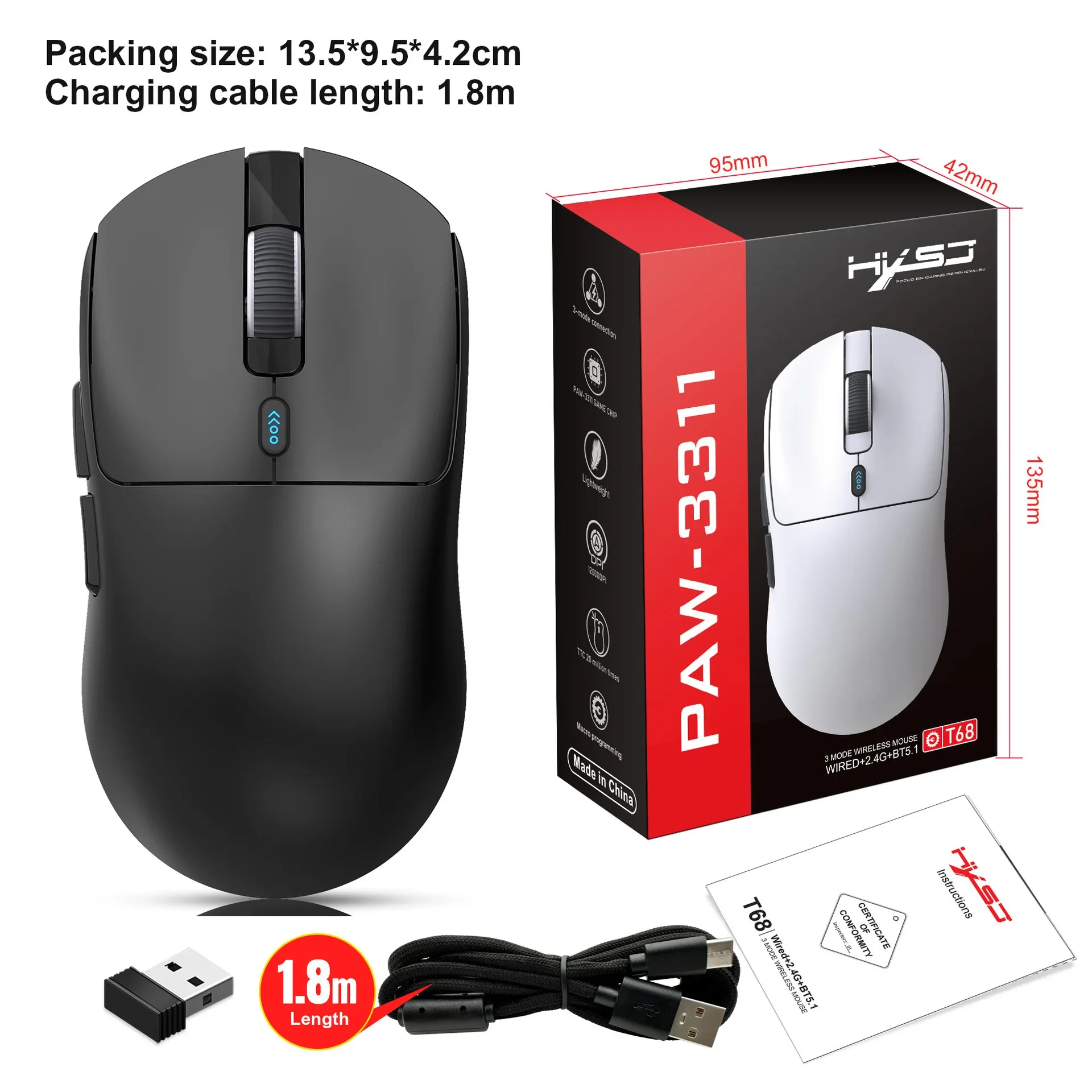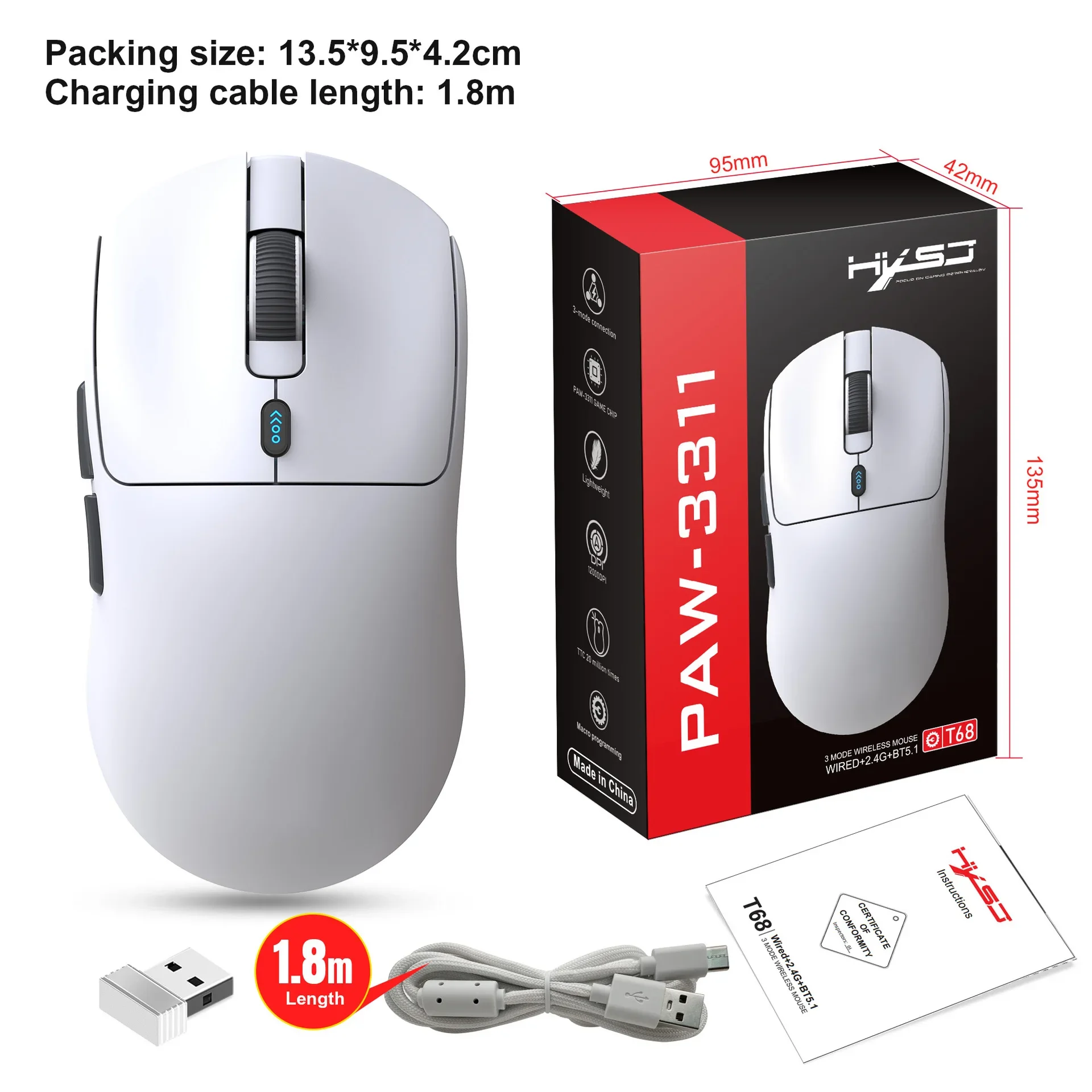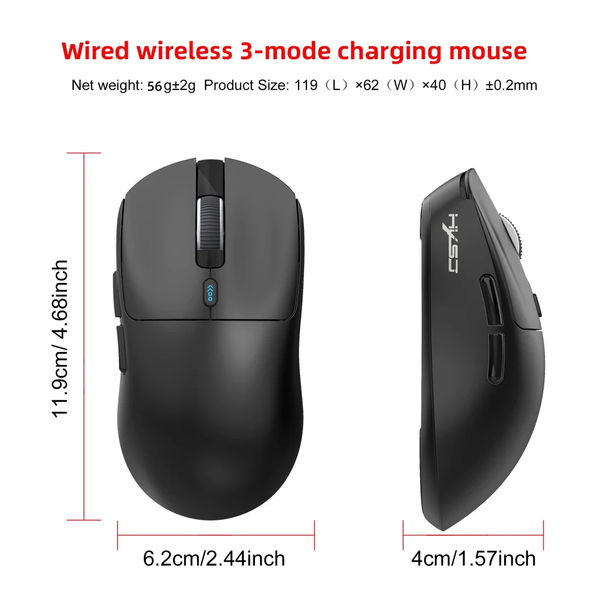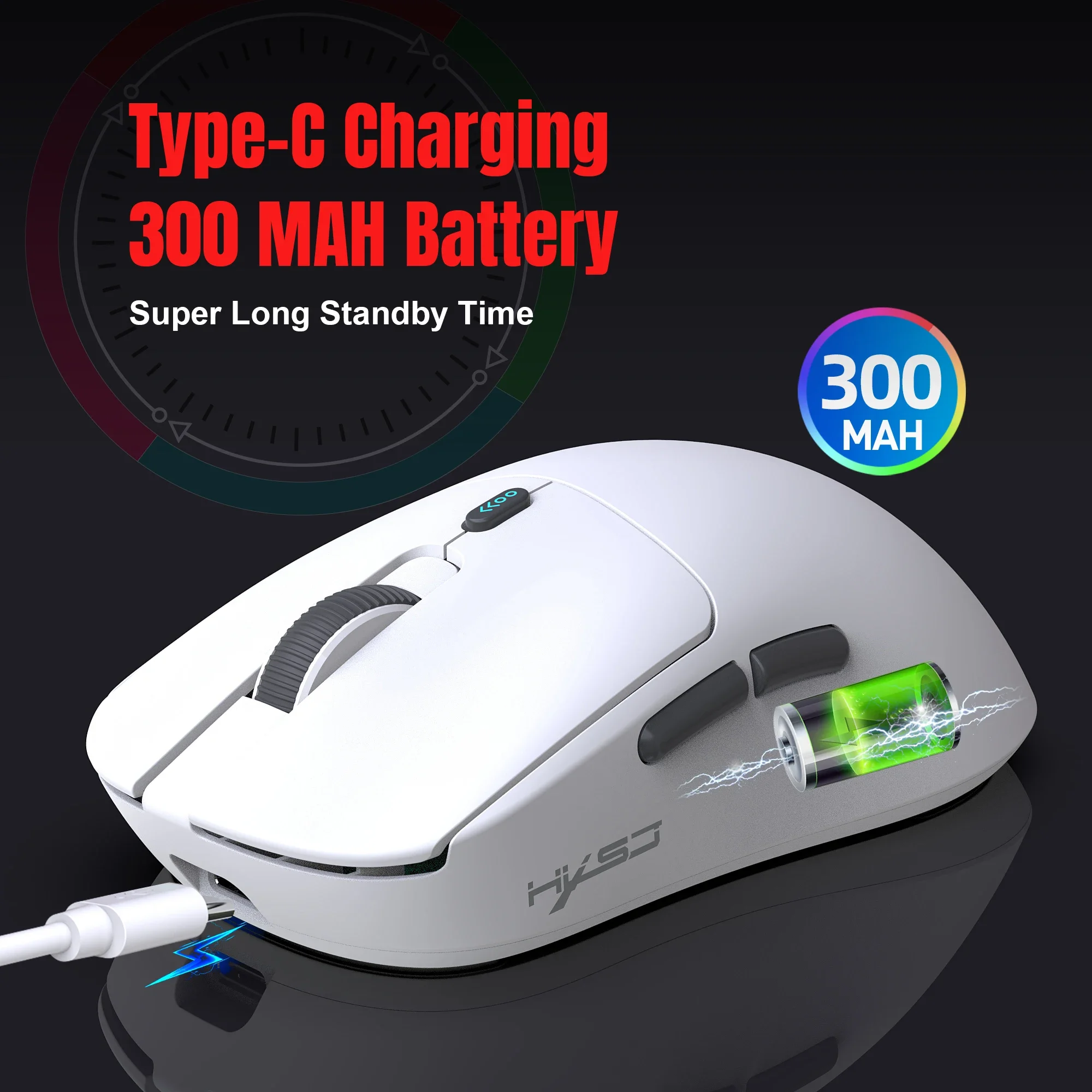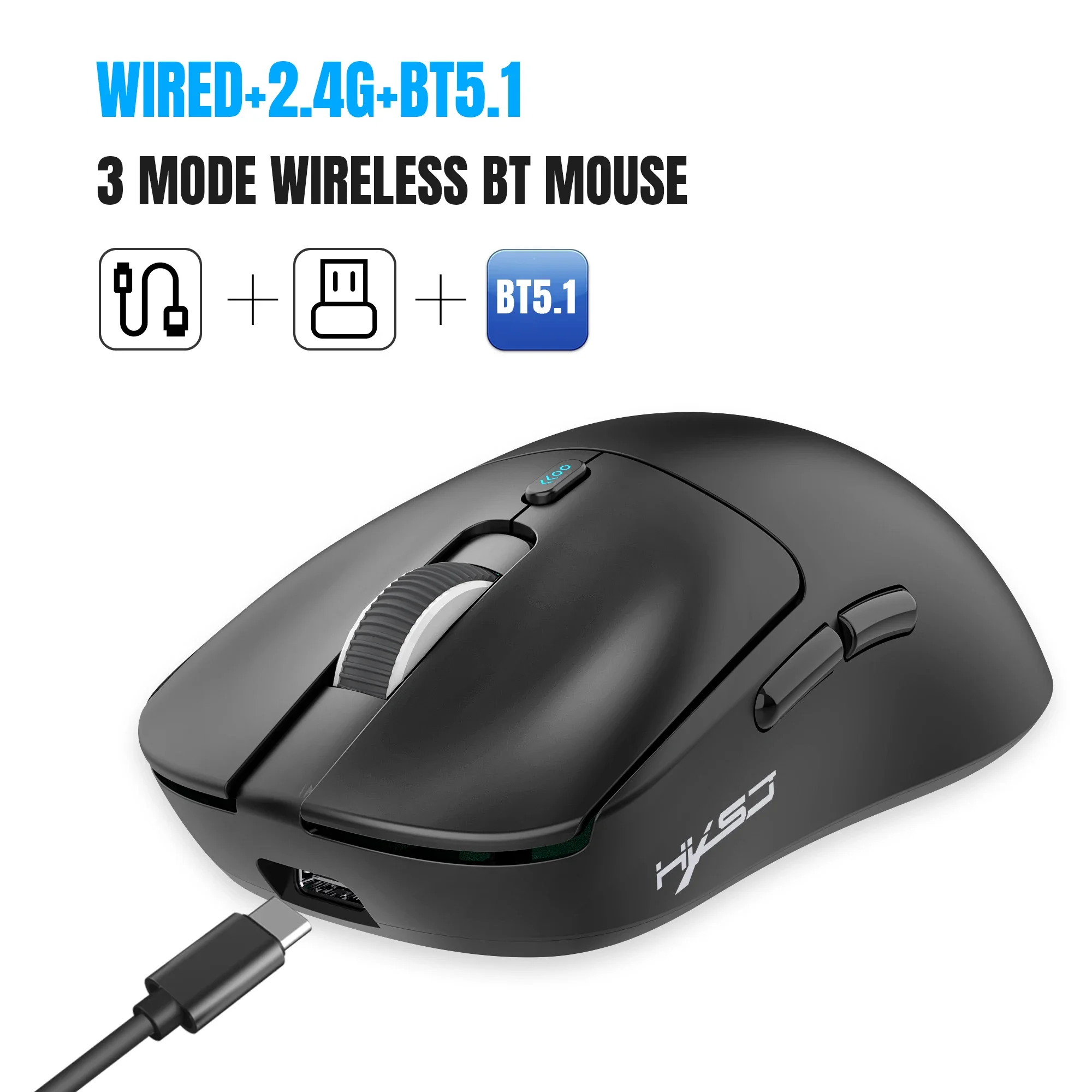 Insert the mouse USB cable into the USB port of the computer. The data cable Type-C interface can be directly used when the mouse is inserted. Wired is preferred in Bluetooth, 2.4G, Off 3 segments.