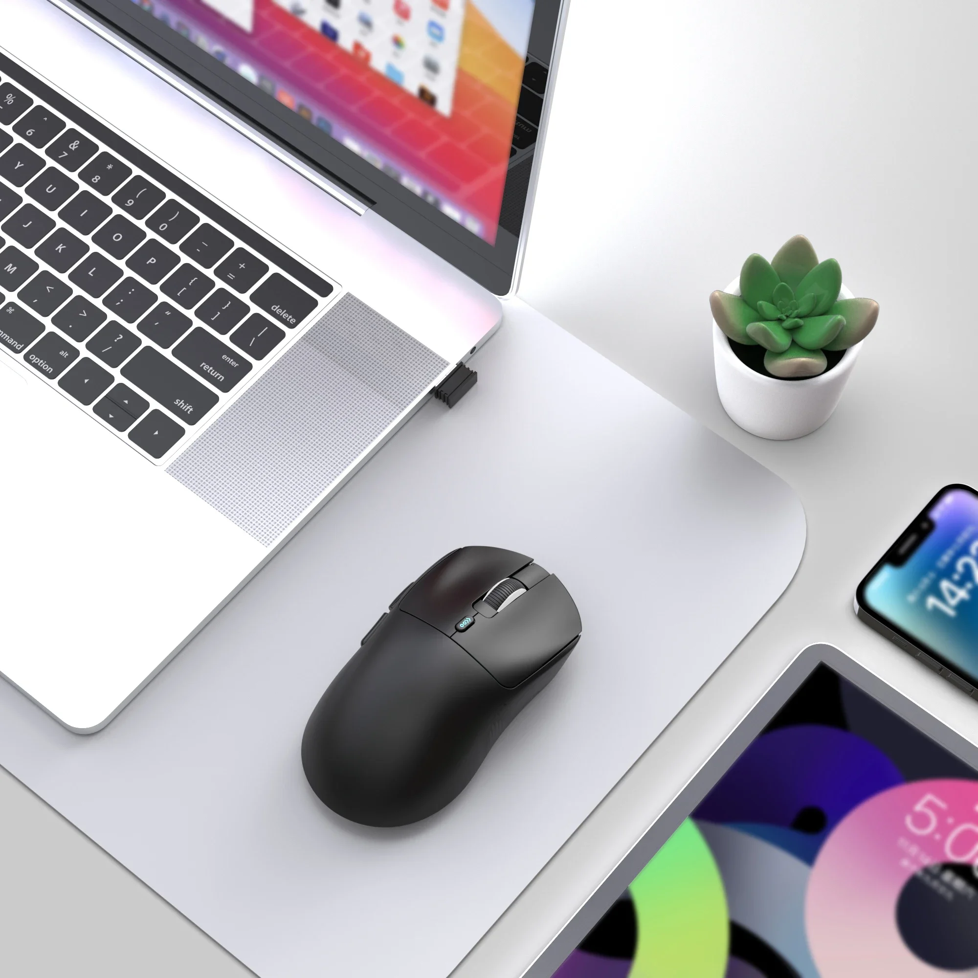 Plug the 2.4G receiver into your computer. Turn the power switch at the bottom upward to 2.4G. Use it directly. (If the left, middle and right are not connected, press the 3-second indicator light to flash yellow for code)