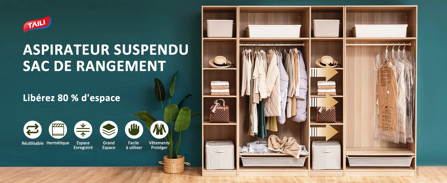 TAILI Hanging Vacuum Storage Bags 6pcs Space Saver Bags Hanging Storage Bags for Clothes, Vacuum Sealed for Suits, Dress, Jacket