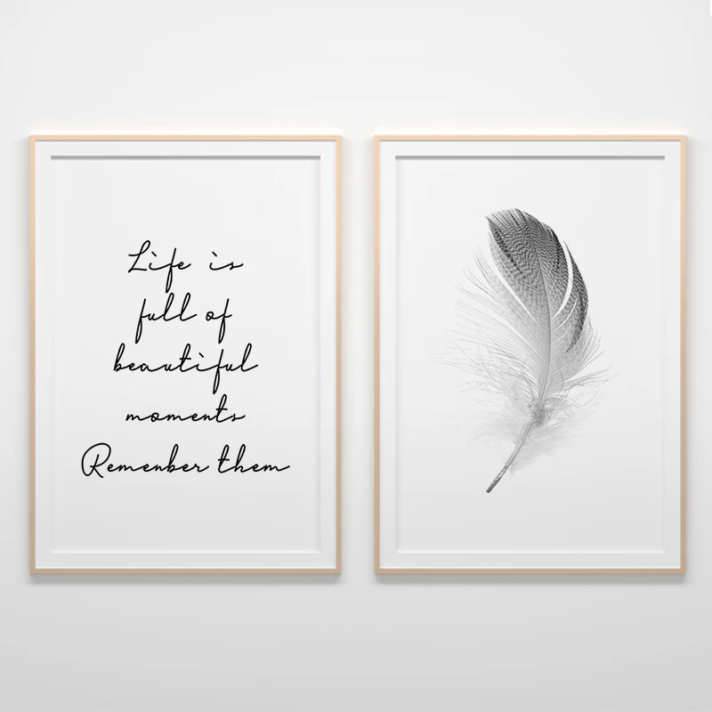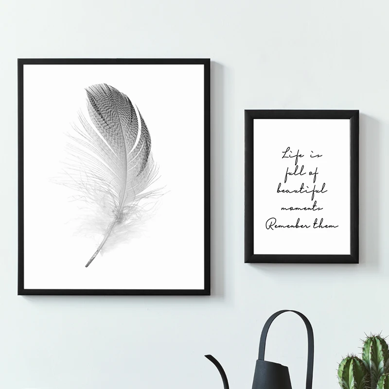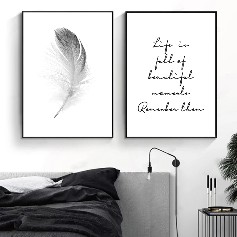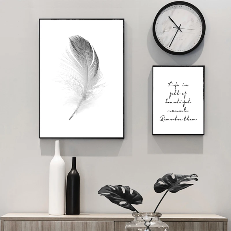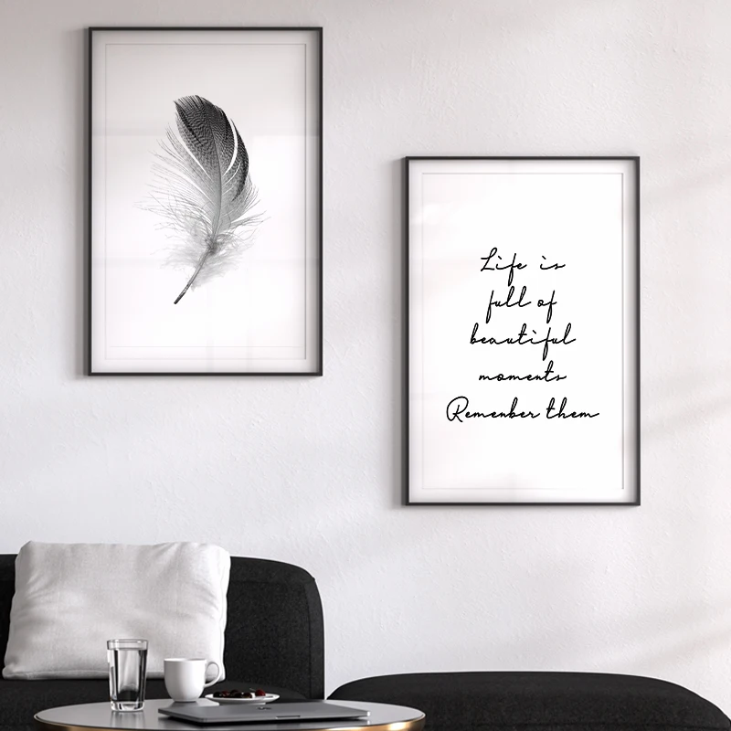 Text Feather Minimalist Canvas Wall Art Print Poster Decorative Nordic Black White Pictures Modern Paintings for the Living Room
