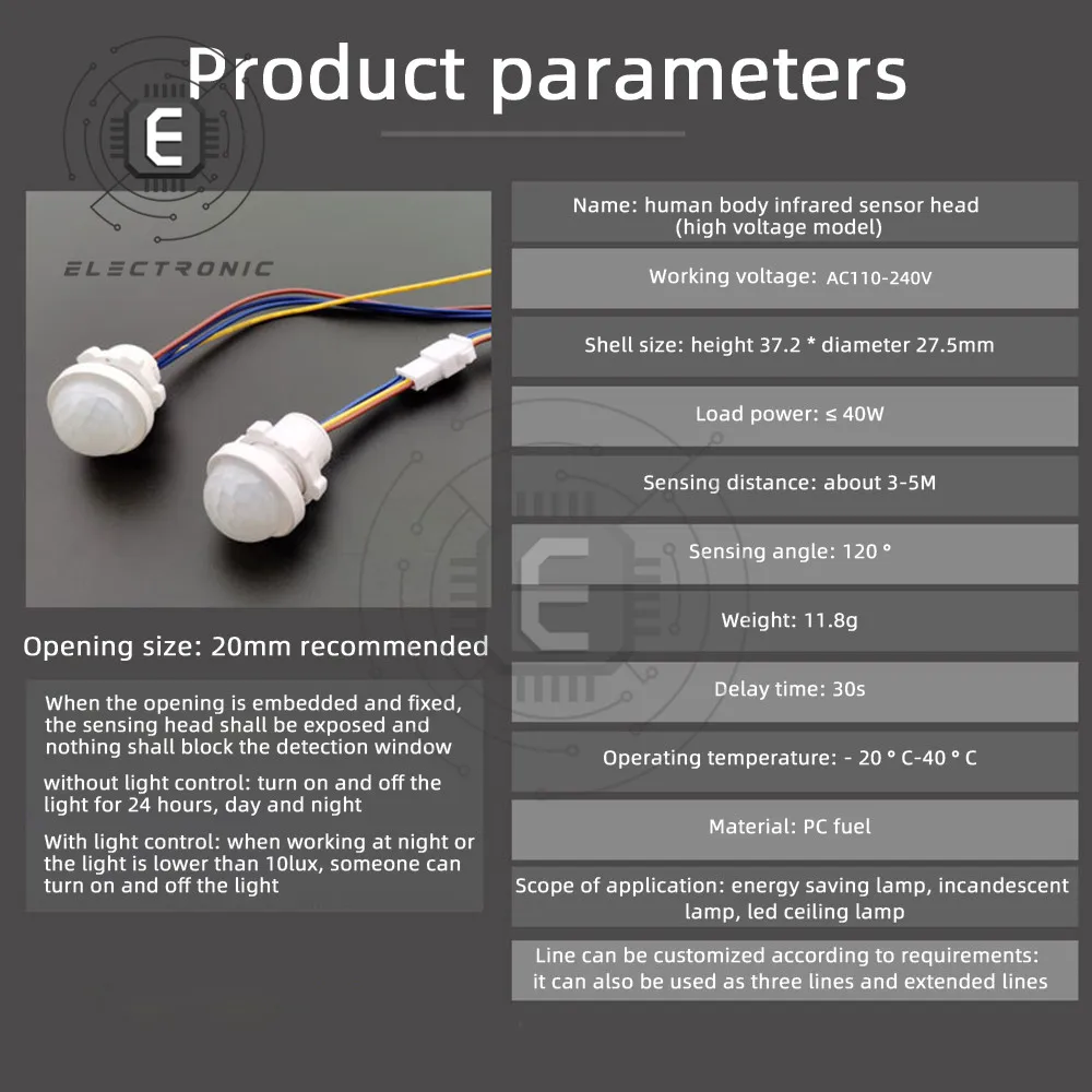Time Delay Adjustable 110V-220V DC12-24V Highly Sensitive Auto ON/OFF PIR Infrared Motion Sensor Switch Detector Light Switch