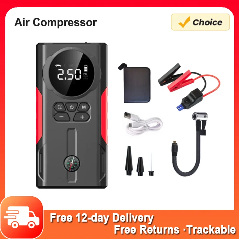 High-Definition Digital Display: Experience the convenience of accurate readings with the high-definition digital display. This jump starter & air compressor allows you to monitor tire pressure in real-time with high precision, ensuring your vehicle’s safety and performance.