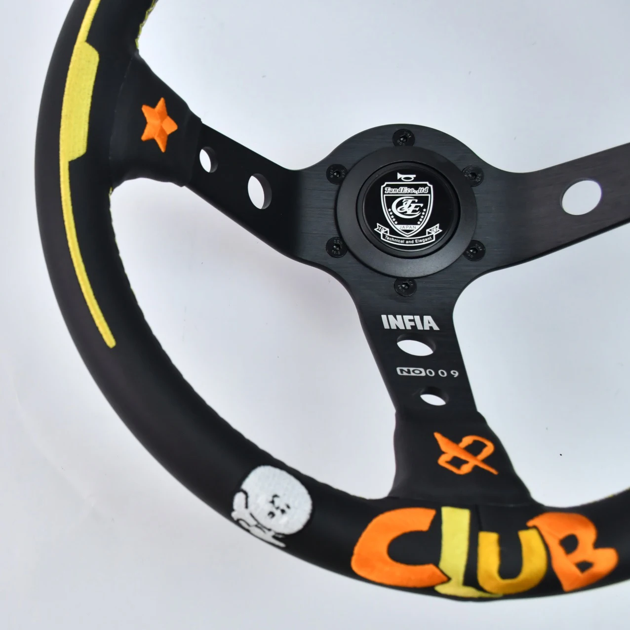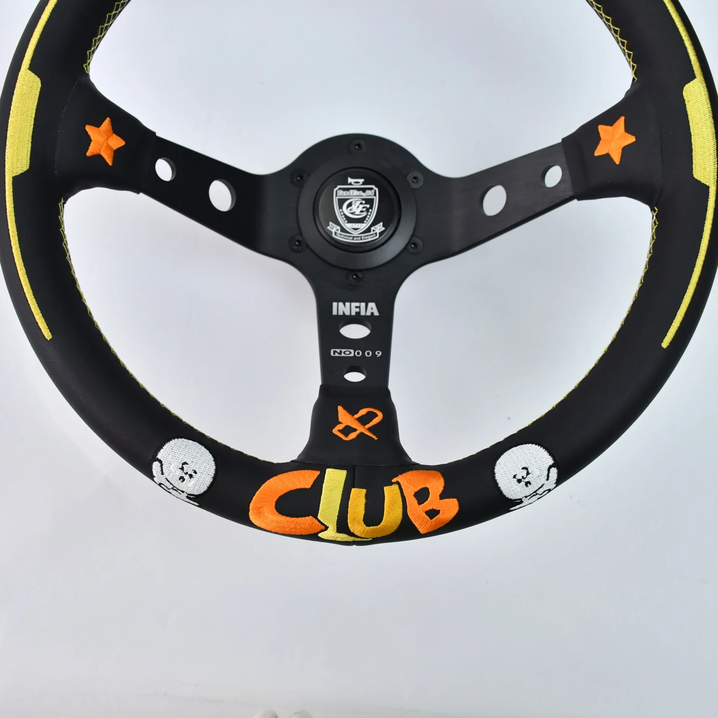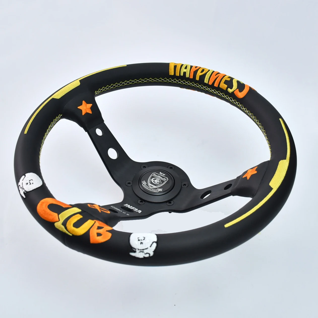 TIYPEOR snowman embroidery black universal 330mm car steering wheel