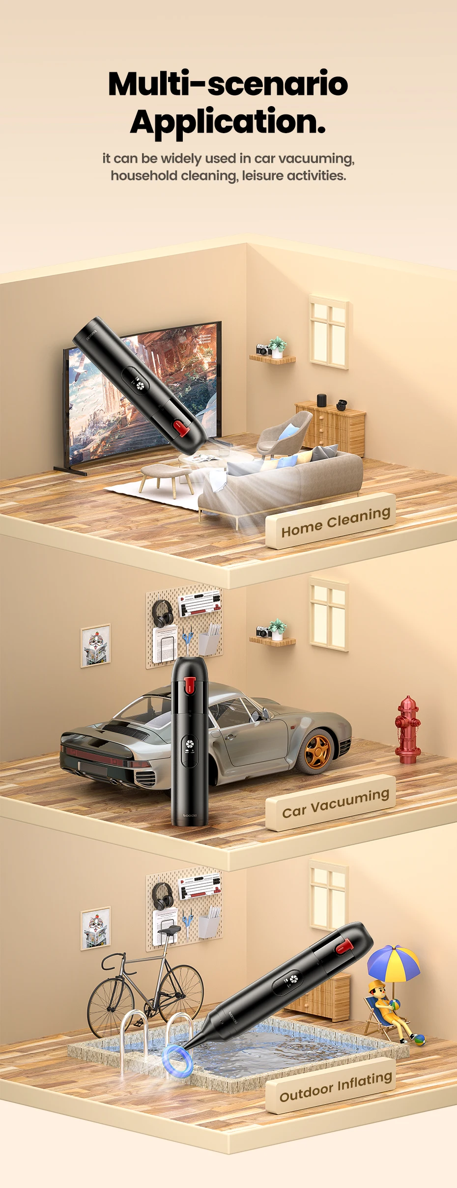 • Versatile Cleaning :Can be used for cleaning cars, homes, and desktops, making it a versatile cleaning tool.
