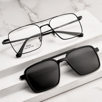 Men Classic Polarized Clip On Sunglasses Pilot Double Beam Titanium Alloy Glasses Frame Optical Retro Sunshades Eyewear