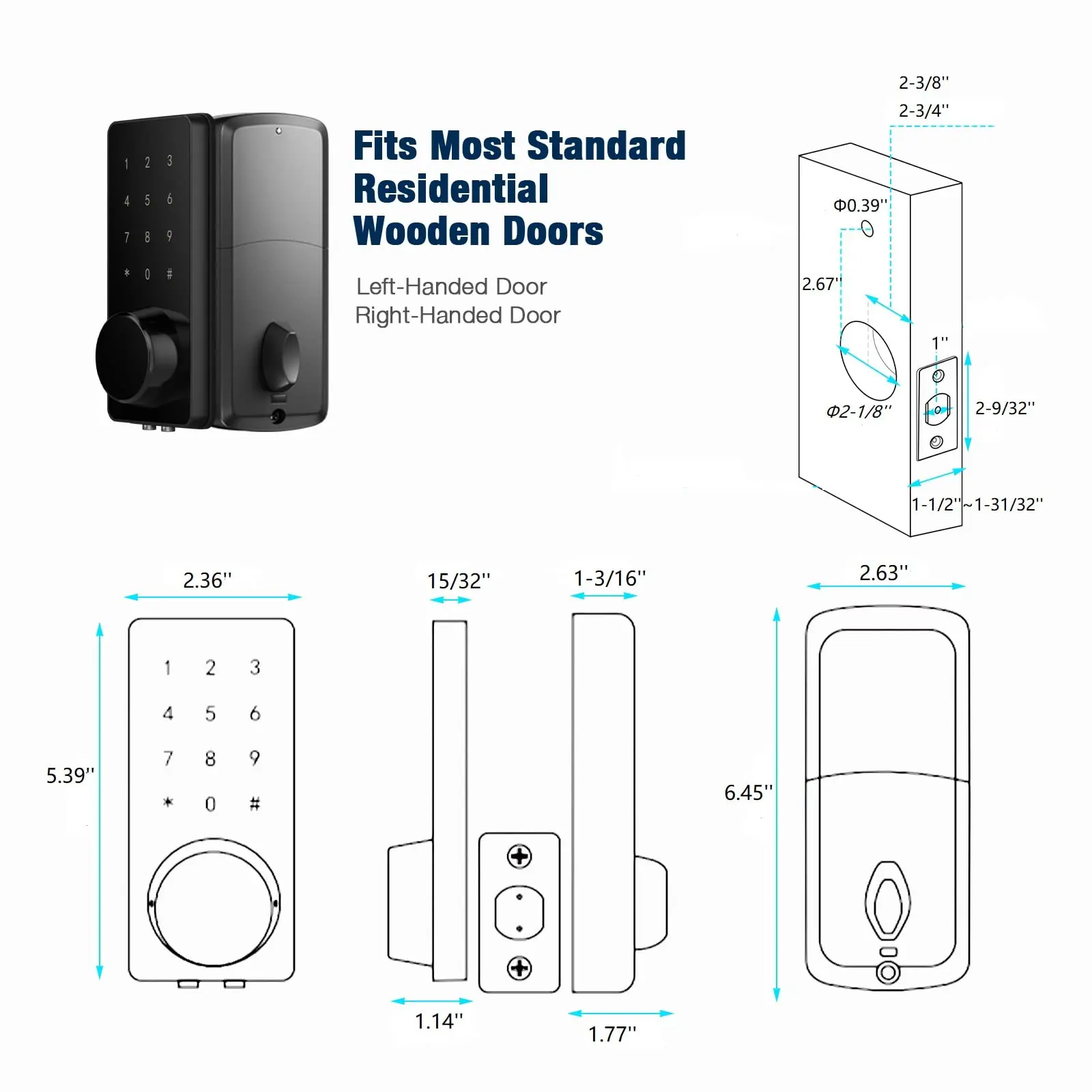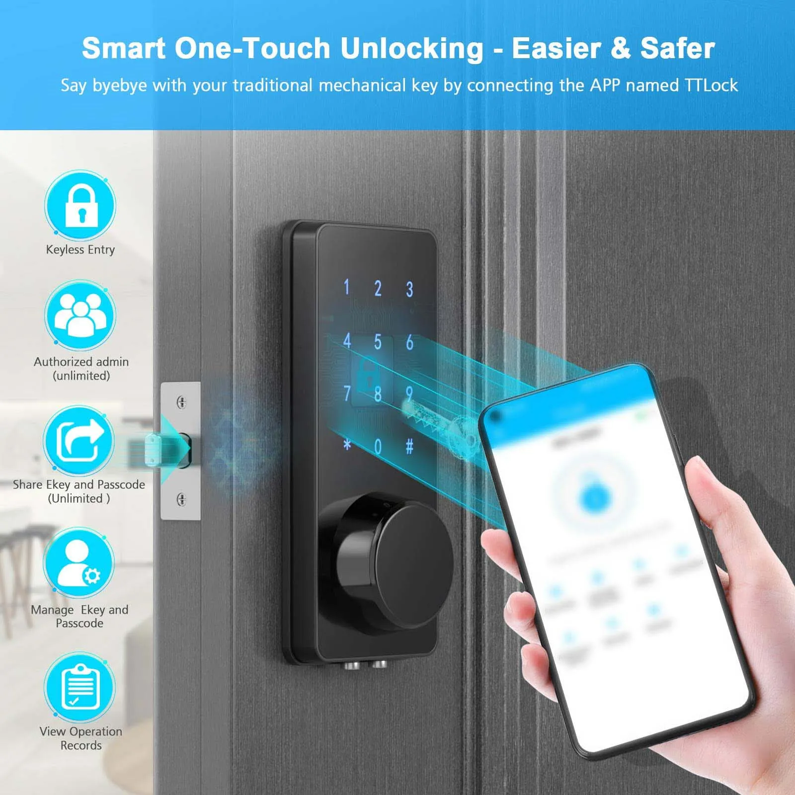 【Free you from mess of multiple keys and busy hands】The smart deadbolt lock supports to app control, you just need to take one phone into your pocket to wander or do exercise, especially for a short-time out. The smart door lock front door helps you take easy life and free you from the mess of many keys and release your busy hands.
