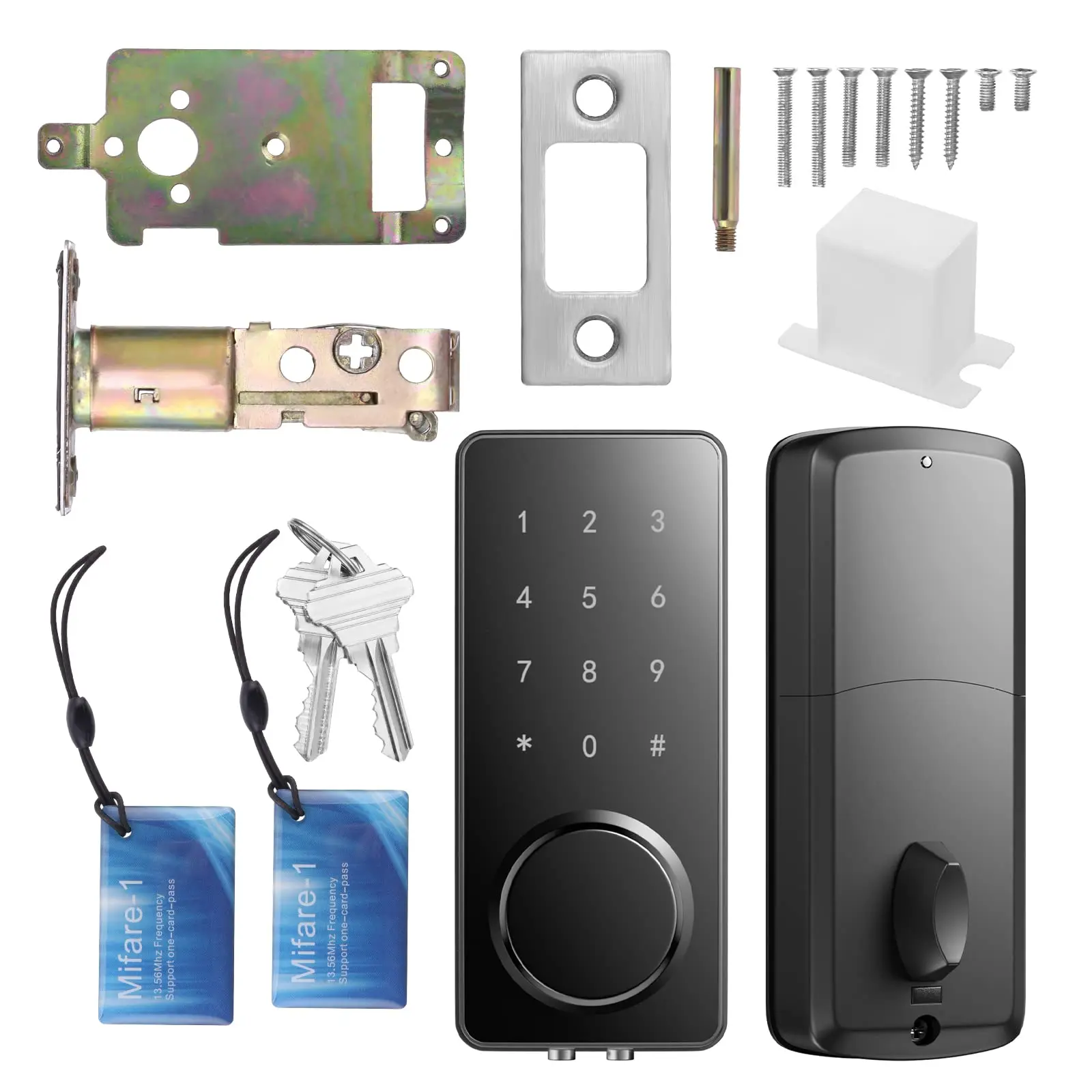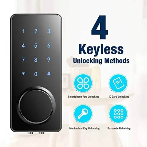【Multiple Ways to Unlock the Deadbolt】The keyless smart door lock with advanced hi-tech has multiple ways to unlock, password, fingerprint, door card, app control, bluetooth,