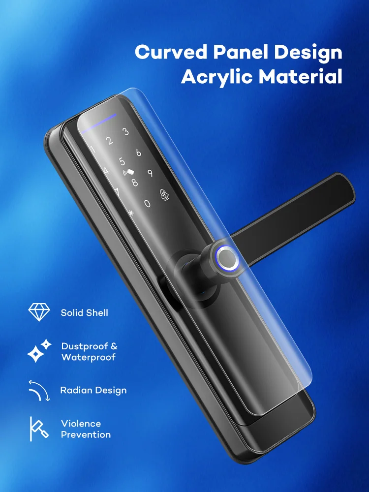 Material and Design: The lock’s handles are made of metal with a glass or perspex fascia, providing a premium look and feel while enabling touch recognition on the keypad
