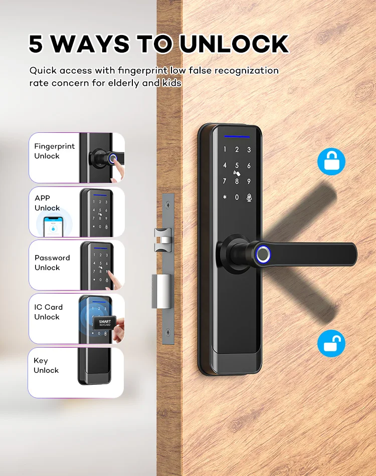Wifi tt lock App bluetooth Fingerprint Lock Smart Card Digital Keyless Code Electronic Door Lock Safety waterproof For home