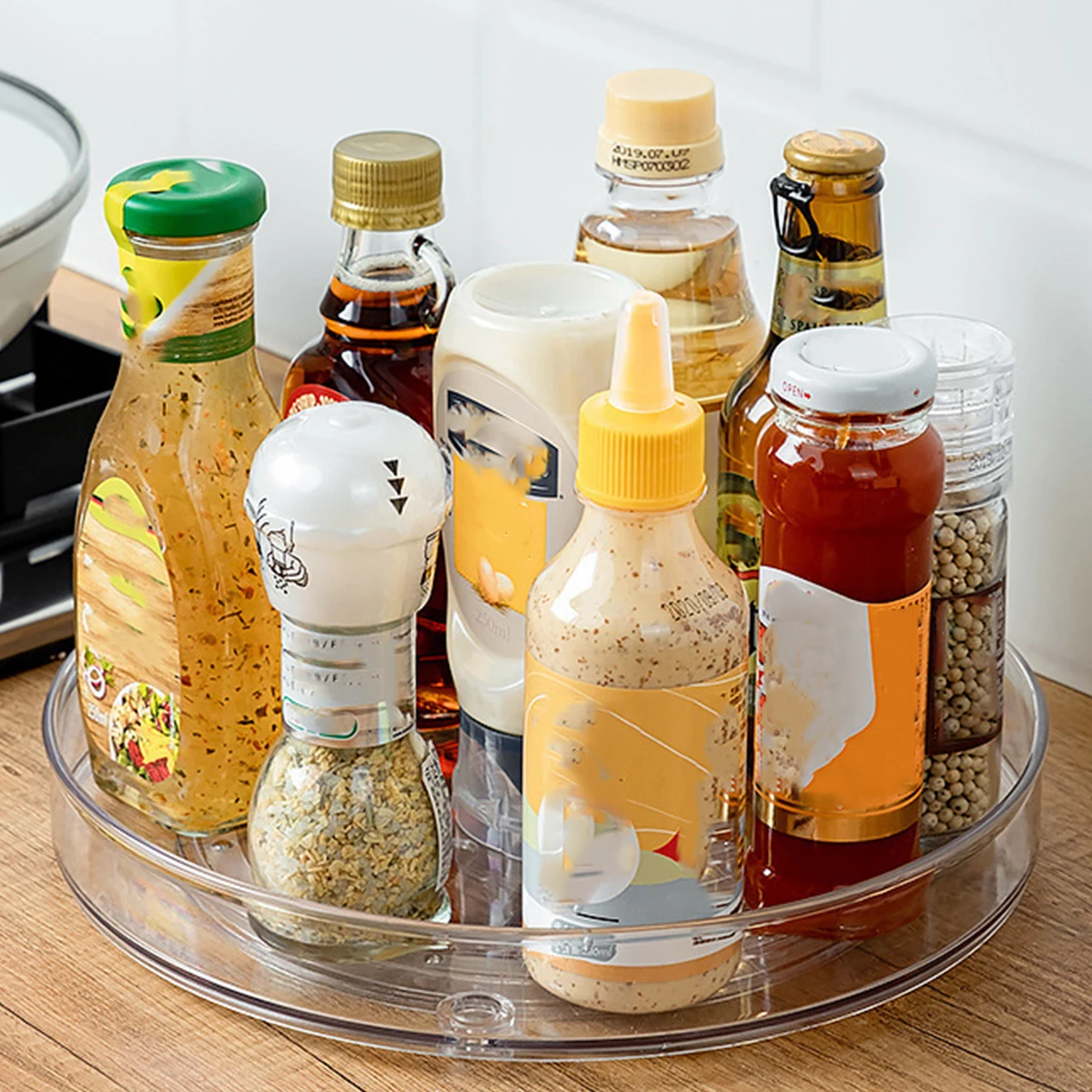 [Transparent Visual Design] The appearance of the turntable storage box is a transparent design, you can quickly identify the items you need to take from the outside, and the simple design can perfectly match your home style.
