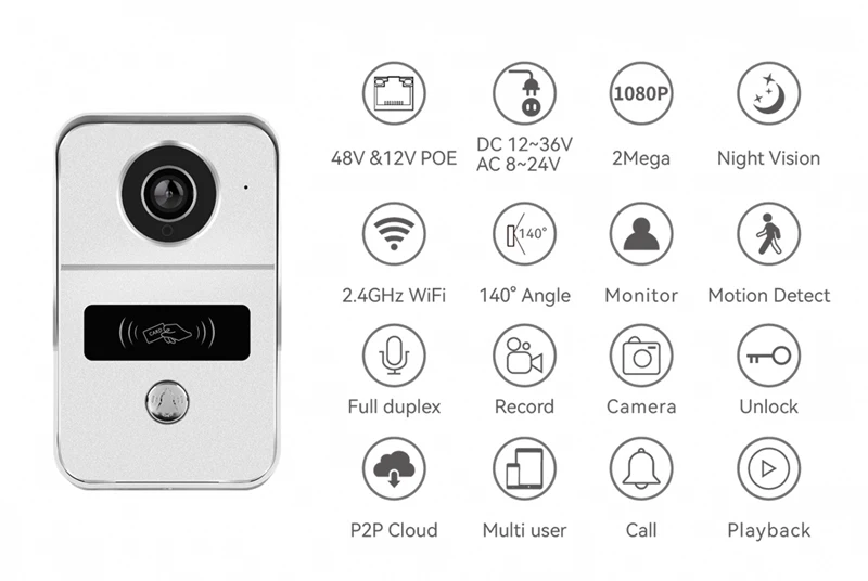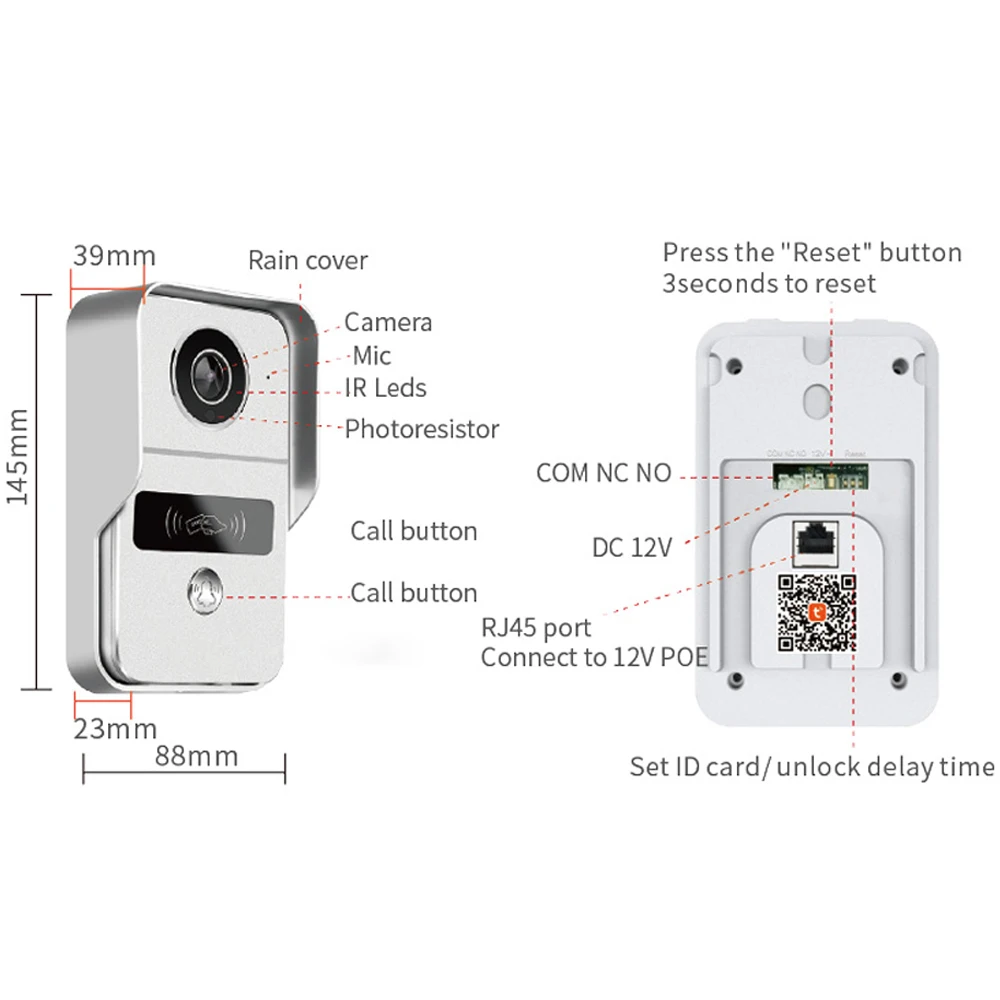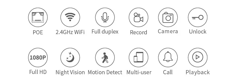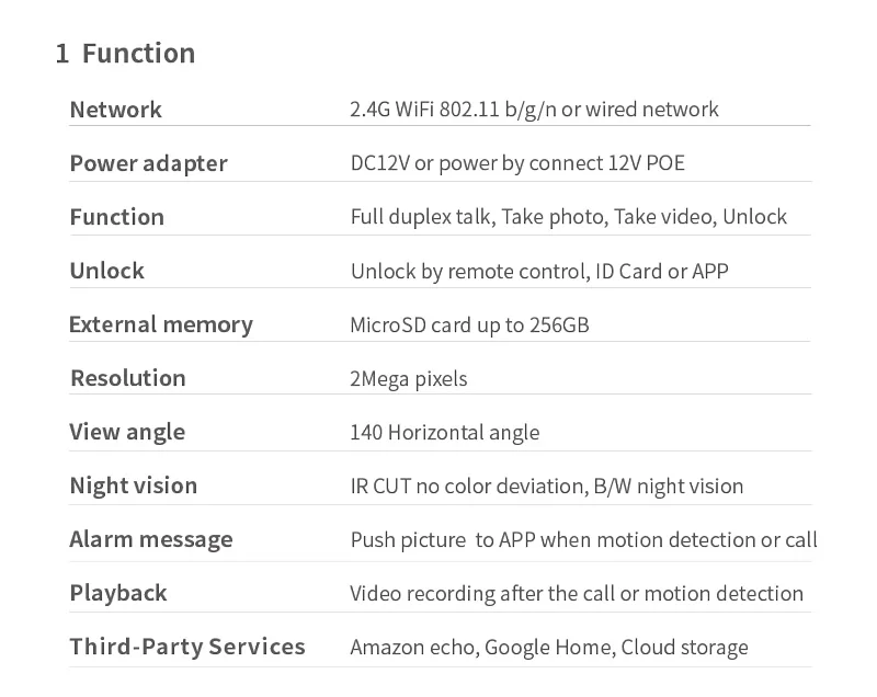 3.Function:Full duplex talk,Takephoto,Take vido,Unlock