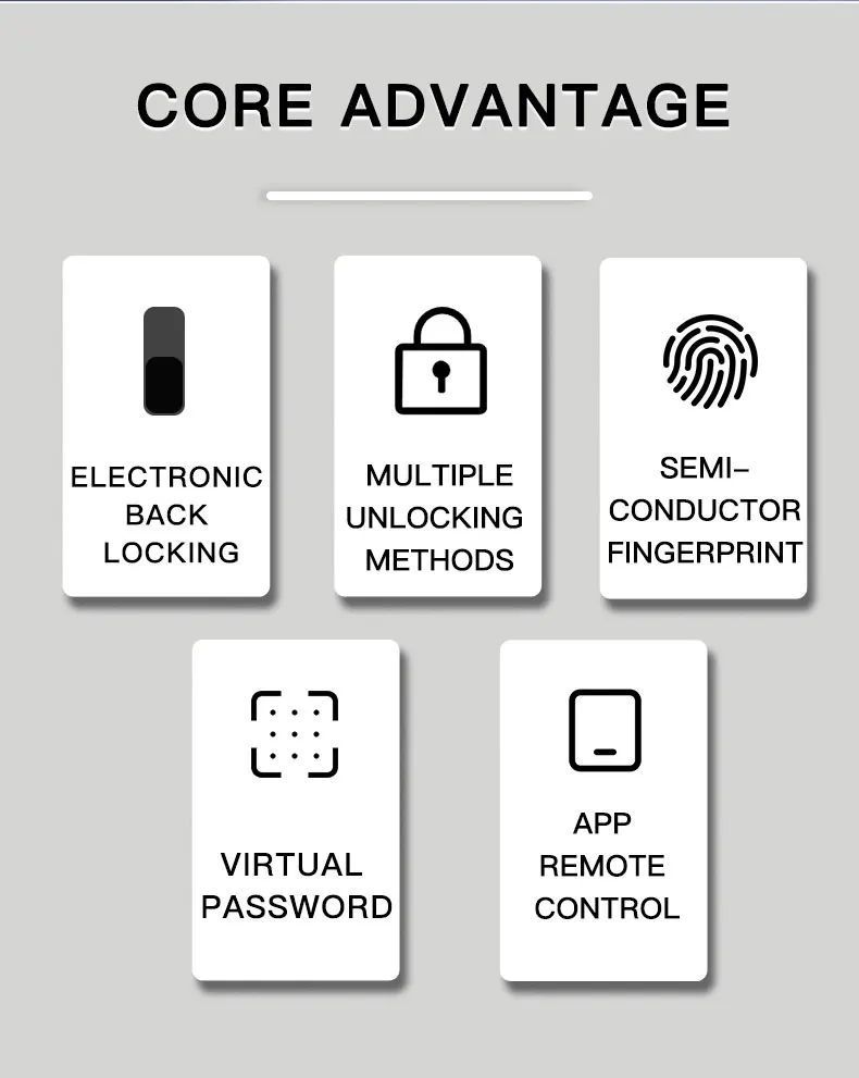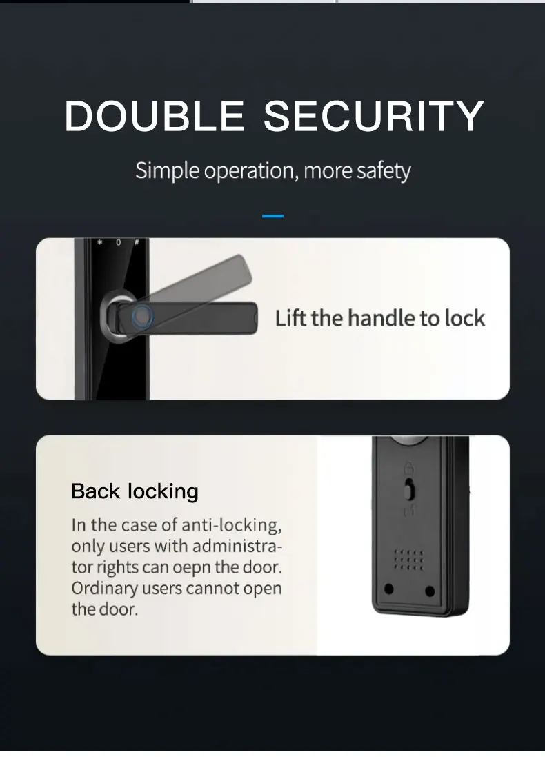 Unlock mode: card+fingerprint+password+mechanical key+APP (optional)