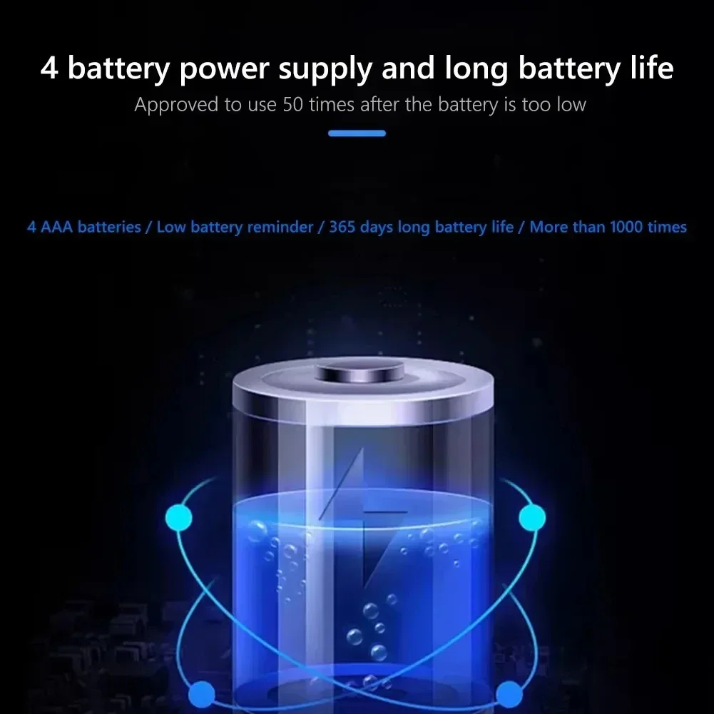 Power Supply: The fingerprint door lock is powered by 4pcs x AAA dry batteries(not included), and meanwhile with a USB charge port for emergency.