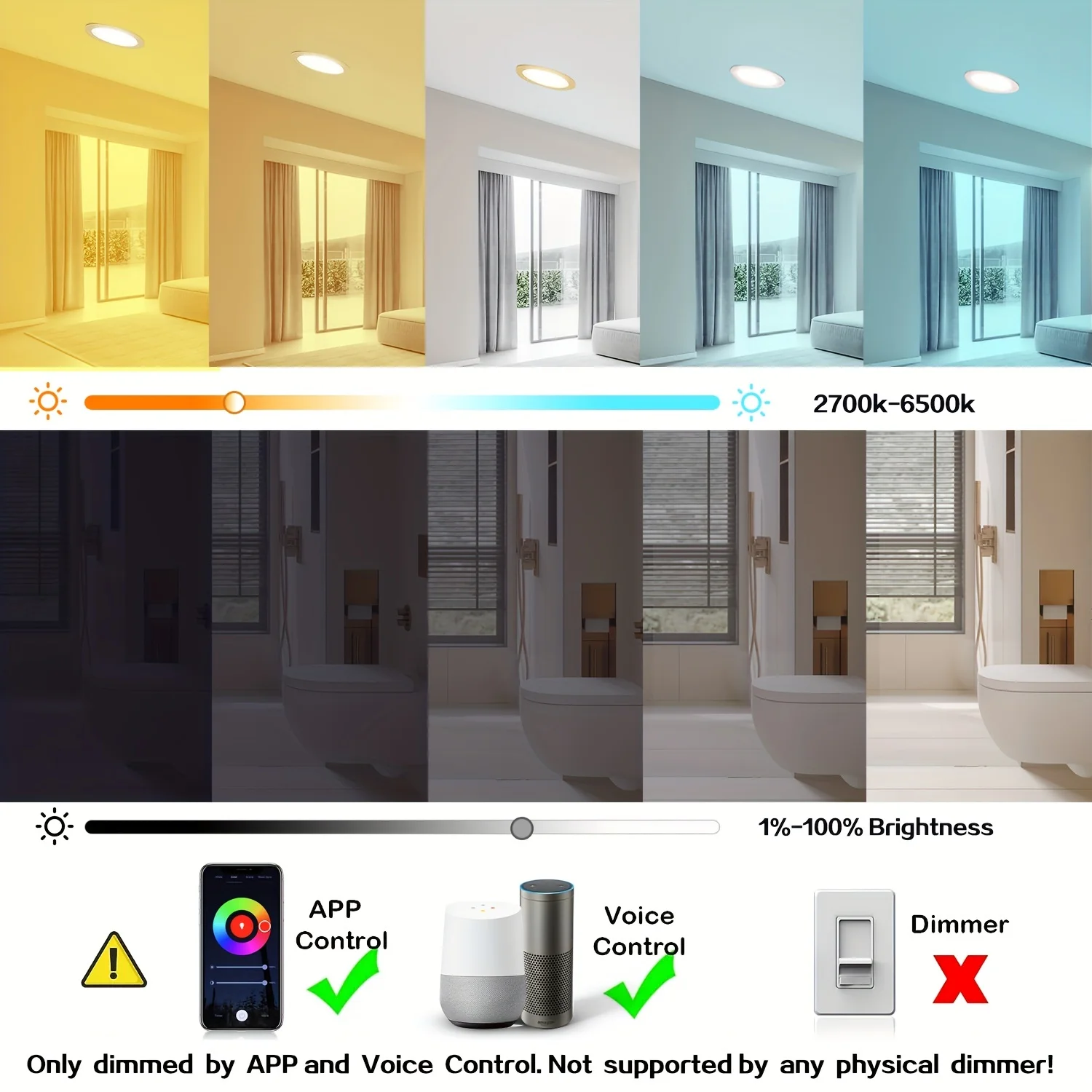 5) Music Sync: The lighting brightness can be changed in sync with the beat of your favorite music, creating a relaxing and calm atmosphere. Change any room to a dance floor, or create a relaxed and peaceful atmosphere. Such as living room, kitchen, bedroom and so on.