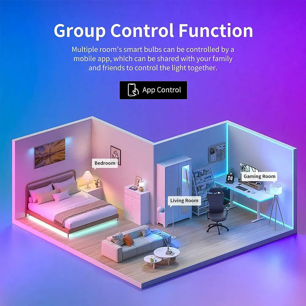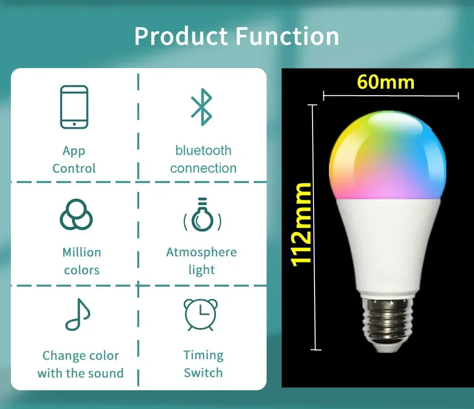 1) APP remote control: Tuya Smart APP/Smart Life APP can be used to remotely control the bulb on and off. change the light color, the brightness.etc,and keep the distance between the APP and the bulb within 12 meters.