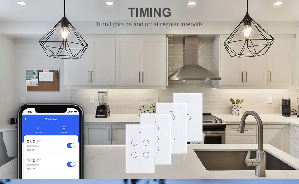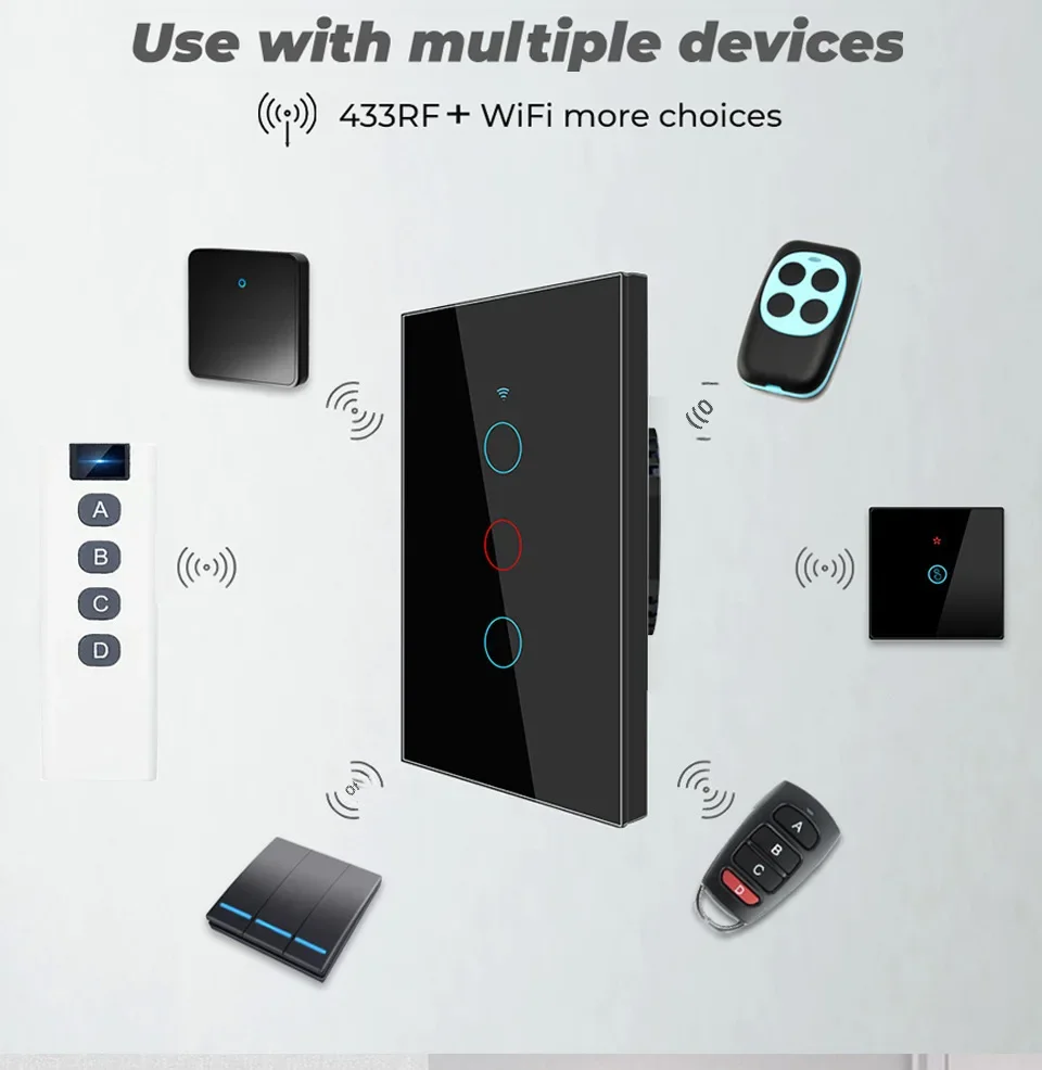 Tuya Smart US Plug Switch Single Fire Line Neutral Wire neutral WiFi Remote Control Tempered Glass Panel Touch Switch